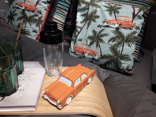La scala potrebbe essere l\’1:24. In vendita a € 6,99 il modello è disponibile solo nel colore arancione. Il bello è che l\’Ikea gli ha anche abbinato un cuscino, che raffigura la stessa vettura in un ambiente tropicale. Un richiamo a Cuba e alle sue auto americane degli anni cinquanta e sessanta che ancora circolano da quelle parti? Chissà.