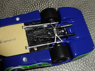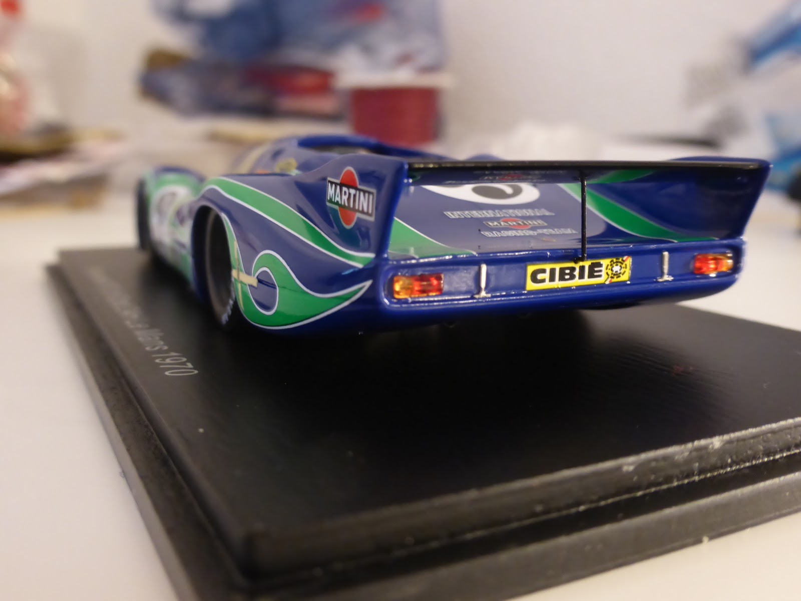 Tornando alla Martini, una delle principali caratteristiche di questa vettura è naturalmente il colore. Quel colore maledettamente a metà strada fra il blu e il violetto, che sfugge sempre, ambiguo e beffardo neanche fosse Diabolik. Spark sembra averlo azzeccato. In foto è quasi impossibile ritrarlo nella sua corretta sfumatura, ma posso confermare che dal vivo, quella nuance così ineffabile sembra azzeccata. All\’ombra il modello dà più sul violetto, alla luce sembra più blu.