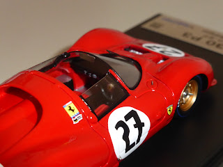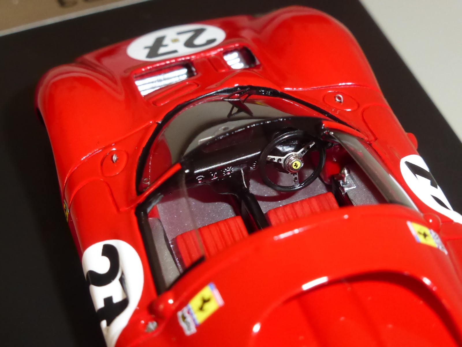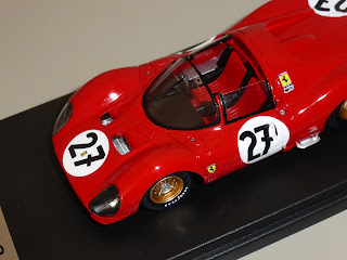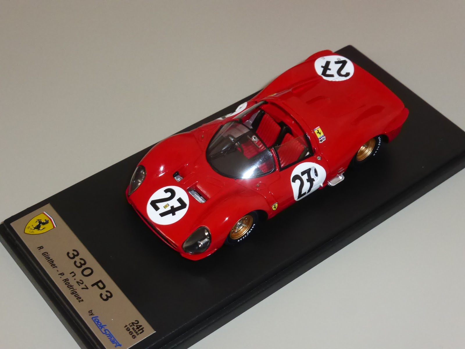 Nella sua gamma consacrata alla Ferrari a Le Mans, Looksmart esce con le 330 P3 del 1966. Quando i ricordi sono importanti. A dodici-tredici anni ricevetti in regalo il libro di Antoine Prunet sulle Ferrari sport prototipo, in cui l\’autore scriveva che a Le Mans 1966, davanti al rullo compressore delle Ford, la Scuderia faceva ben misera figura. Ogni volta che vedo il modello di una Ferrari ufficiale di Le Mans 1966 mi torna in mente quel passo del libro del Prunet. Looksmart ha proposto dunque le tre P3, due coupé (di cui ci occuperemo in un altro articolo) e lo spyder iscritto dal NART. Non si è trattato stavolta di un grande sforzo, giacché il modello è praticamente identico al RedLine uscito nel 2009. Questo significa anche, purtroppo, che non è stata corretta la forma della carenatura della colonna dello sterzo, che dovrebbe avere una linea discendente senza toccare l\’altro limite dell\’uscita d\’aria del radiatore.
