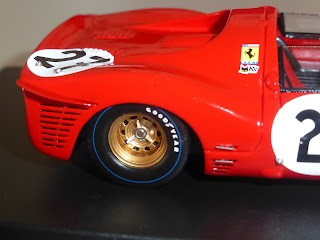 | La gomma dalla spalla abbastanza panciuta è stata correttamente riprodotta. La P3 del NART era gommata Goodyear, a differenza dei due coupé che utilizzavano pneumatici Firestone. |