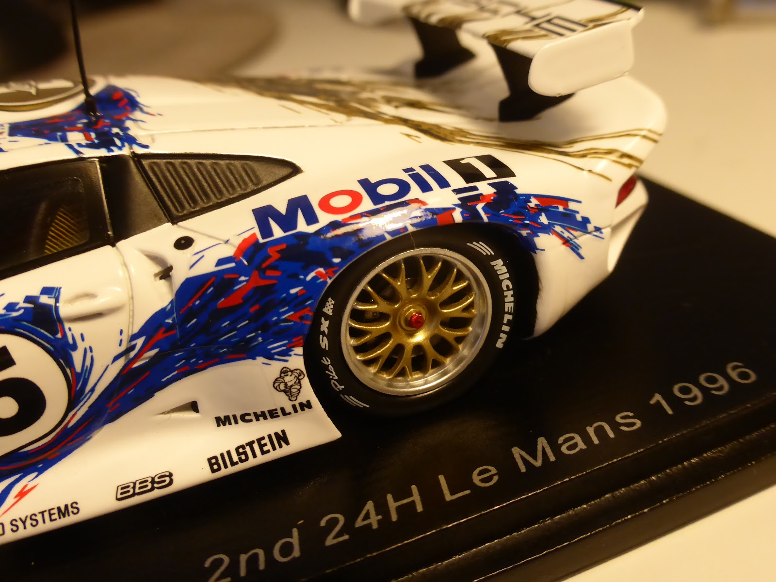 La scritta Michelin in prossimità della piccola NACA laterale dovrebbe essere sulla stessa linea della presa stessa, e non al di sotto. Le paratie dell\’ala posteriore dovrebbero avere i tre rivetti di fissaggio, cosa facilissima da ottenere anche con una semplice decal, se proprio non si vogliono scomodare altri sistemi.