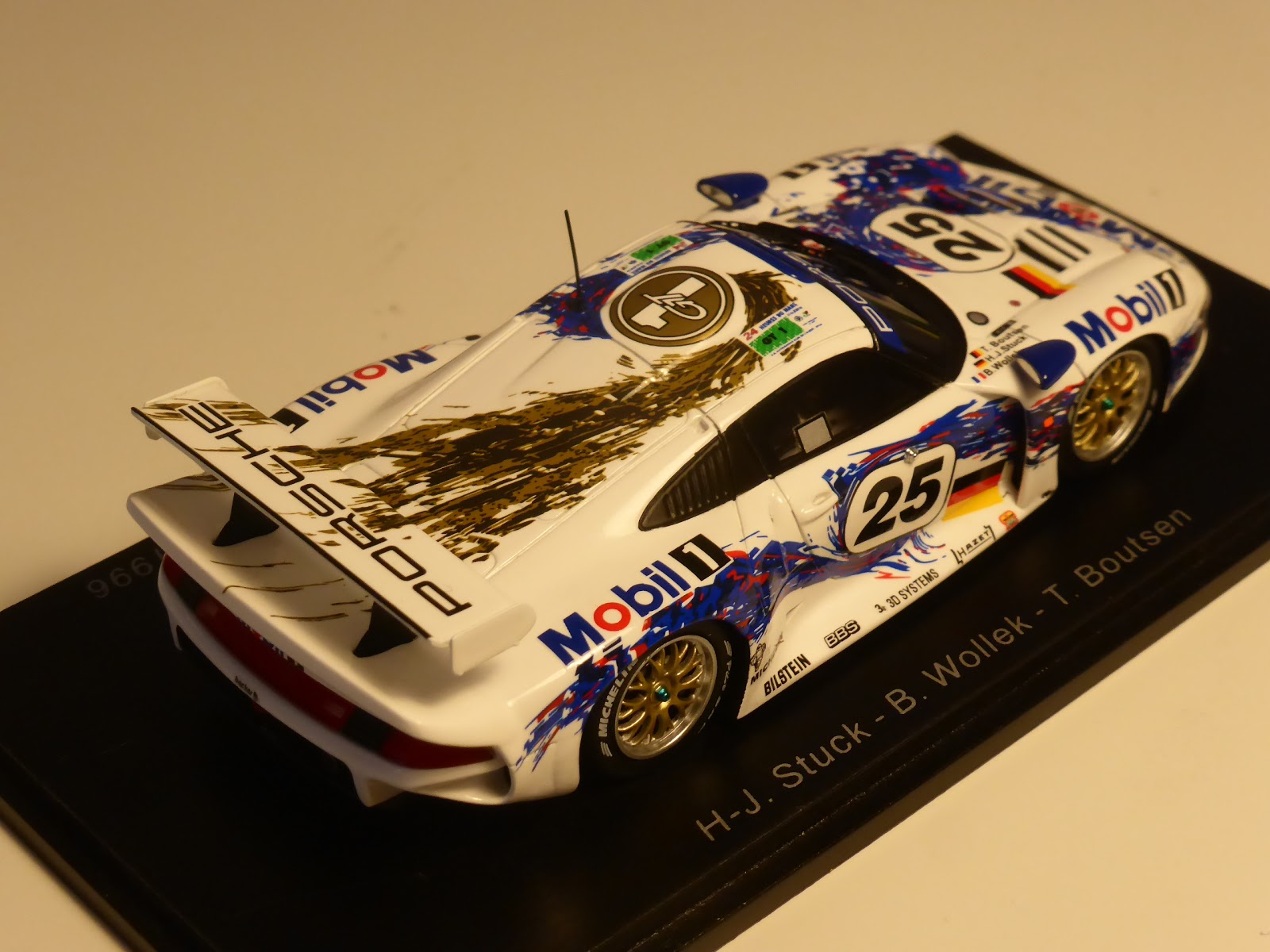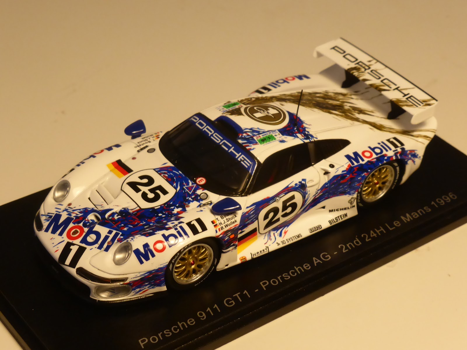 Forse ho parlato troppo di Spark sul blog di recente, ma del resto devo fare con quello che passa il convento. Arrivano degli Spark e parlo di Spark. Non ho molti sponsor anche se i pochi che ho mi lasciano scrivere quello che voglio. Altrimenti sarei io a cacciarli a calci nel culo. Detto questo, ecco una carrellata di foto della Porsche 911 GT1 di Spark, versione Le Mans 1996. Il modello è uscito da pochissimo nella versione numero 25 (piloti Wollek/Stuck/Boutsen).