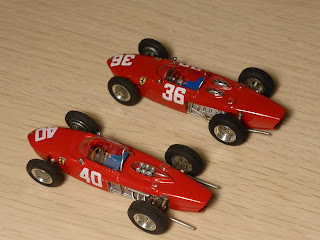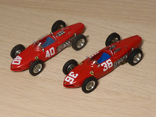 | Due delle tre versioni del GP di Monaco 1961: a sinistra la vettura di Von Trips, a destra quella di Ginther. Due vetture differenti, la n.40 equipaggiata col motore V65, la n.36 col motore V120. |