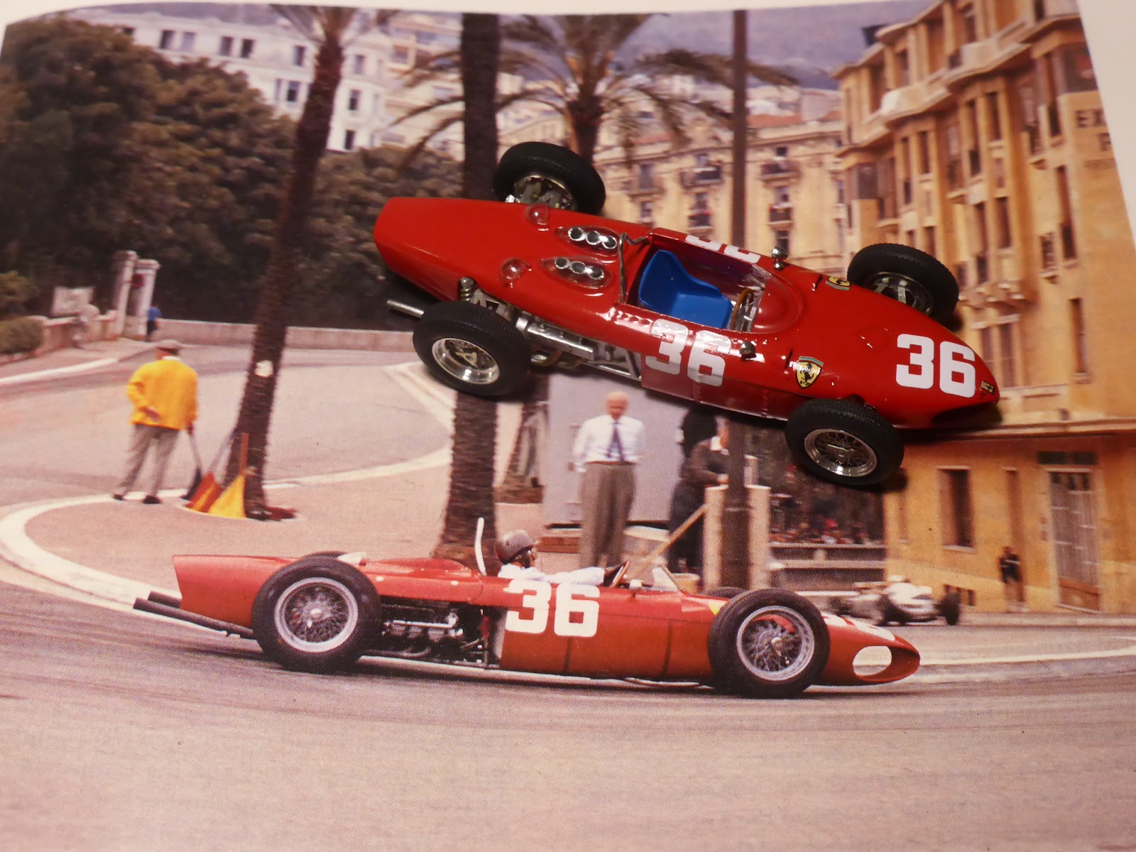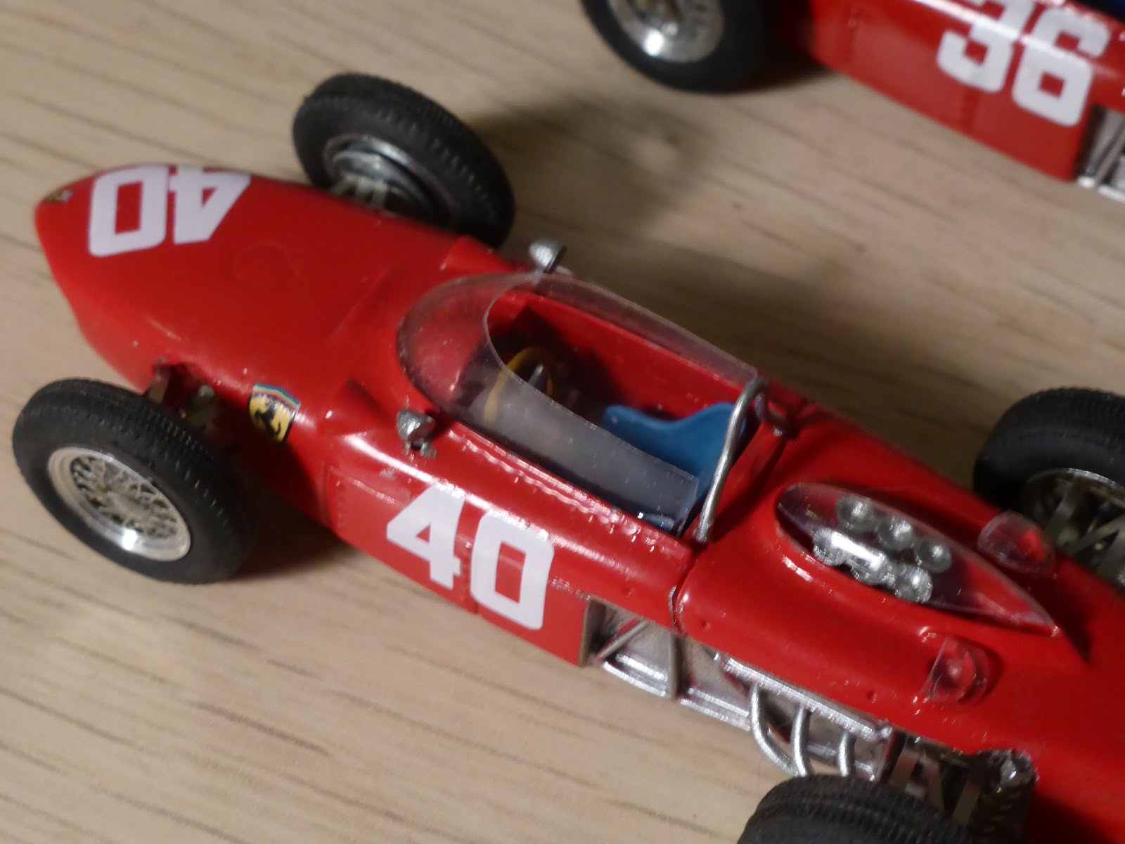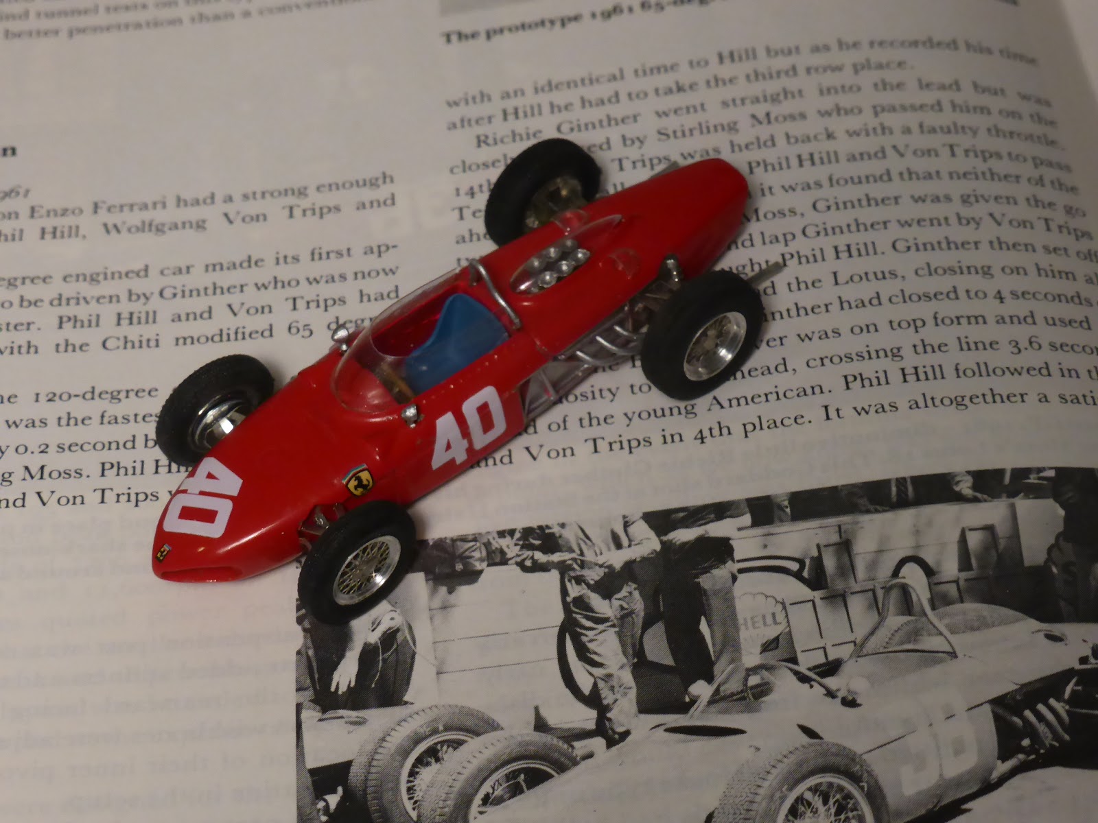 Non che mancassero riproduzioni della vettura, che ha goduto delle simpatie degli artigiani fin dagli anni settanta, per arrivare a kit ben più raffinati dei giorni d\’oggi. Il modello Jade è una saggia via di mezzo, acquistabile sia in kit sia factory built. E siccome i modelli – come dico sempre – vanno abbinati ai libri, ho deciso di rileggermi quello che Hans Tanner aveva scritto nel suo monumentale volume Ferrari (consiglio la sesta edizione, cui partecipò anche Doug Nye). I due modelli di queste foto sono relativi al Gran Premio di Monaco, debutto della stagione 1961, dove la Ferrari portò una vettura col motore V120° per Ritchie Ginther e due col motore V65° per Phil Hill e Wolfgang von Trips. Propulsori, è appena il caso di ricordarlo, progettati dal nostro geniale Carlo Chiti.