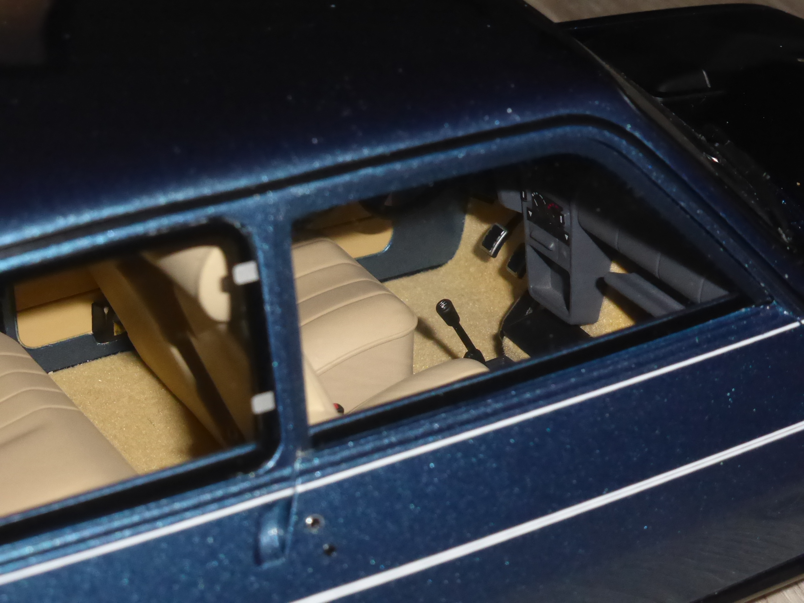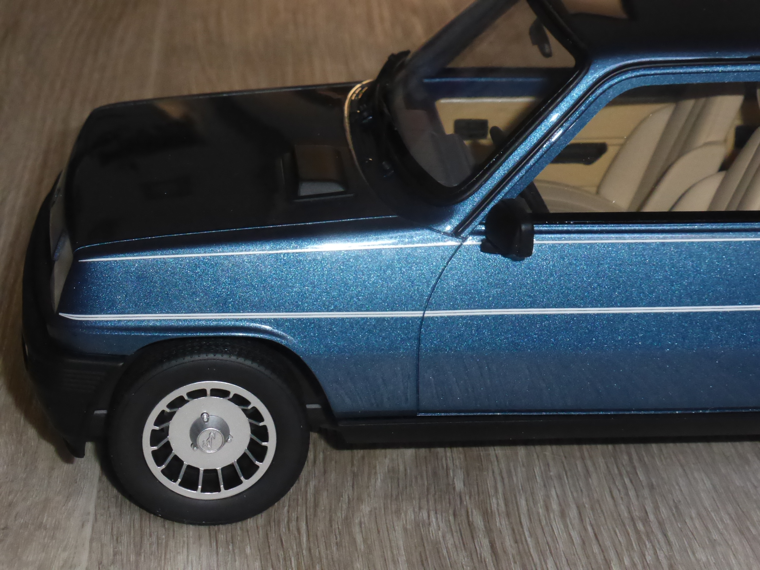 Comparivano delle discrete scritte \”Turbo\” sul cofano anteriore e sul portellone oltre che una larga vetrofania sul lunotto. OttOmobile ha scelto per la sua 5 Alpine Turbo uno dei colori più classici, il blu Navy 491, abbinato alla selleria color sabbia (abbinato a ogni colore si poteva avere anche la similpelle nera). Al blu 491 erano associati i filetti laterali di color argento. Lasciamo la parola alle didascalie delle foto.