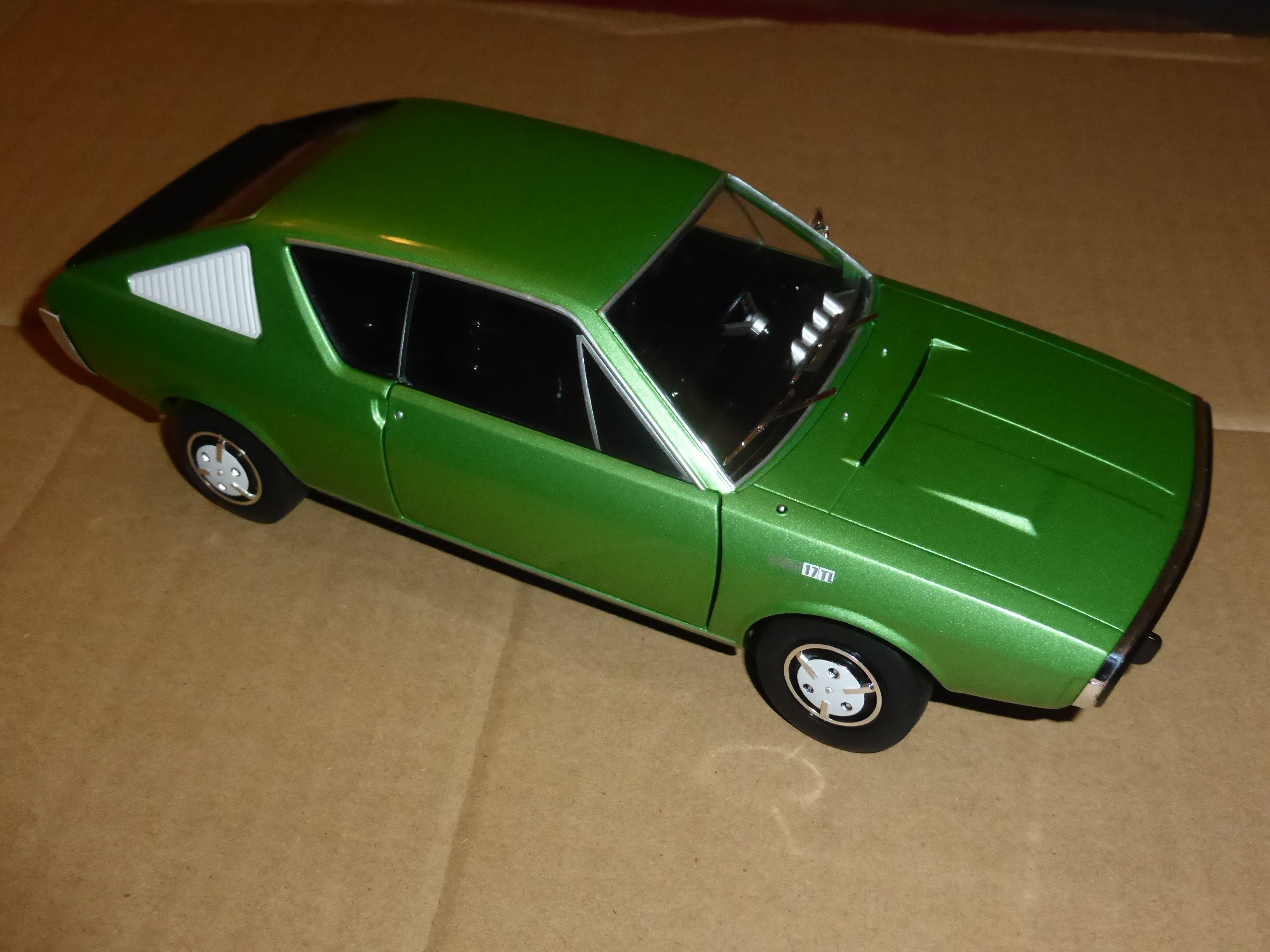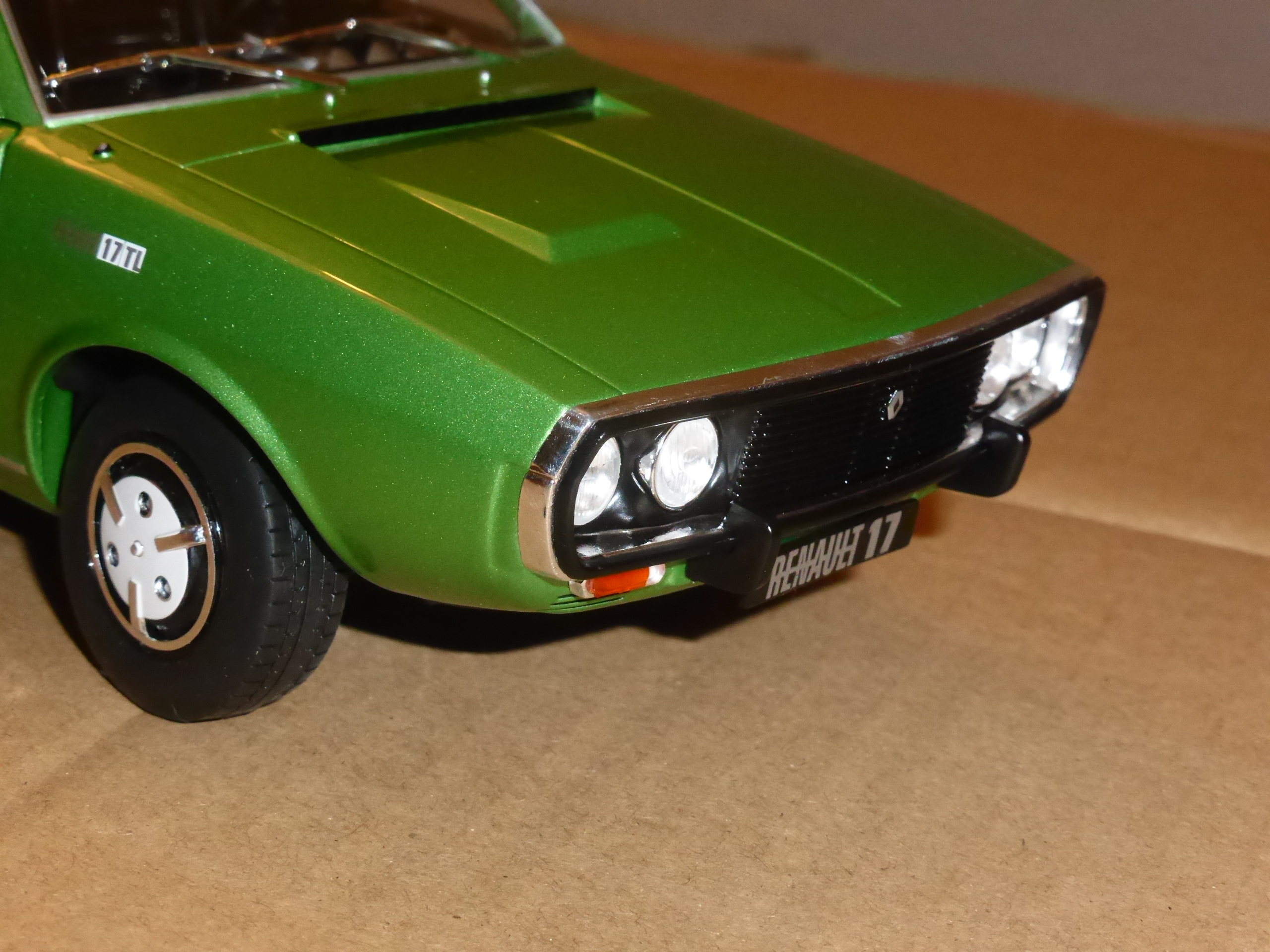 Norev non ha però scelto la 17TS ma una più normale 17TL, cosa peraltro che non ci sentiamo di criticare, visto che molto spesso, nel modellismo, si scelgono le versioni più nobili tralasciando tutto il resto. Il modello (catalogo numero S1803701) è definito da Norev come \”R17 MkI 1976\”. Il 1976 fu l\’ultimo anno della TL, che lasciò il posto alla sola TS (coupé e cabriolet), oggetto peraltro di un restyling.