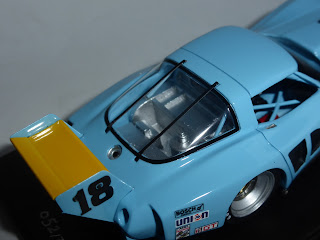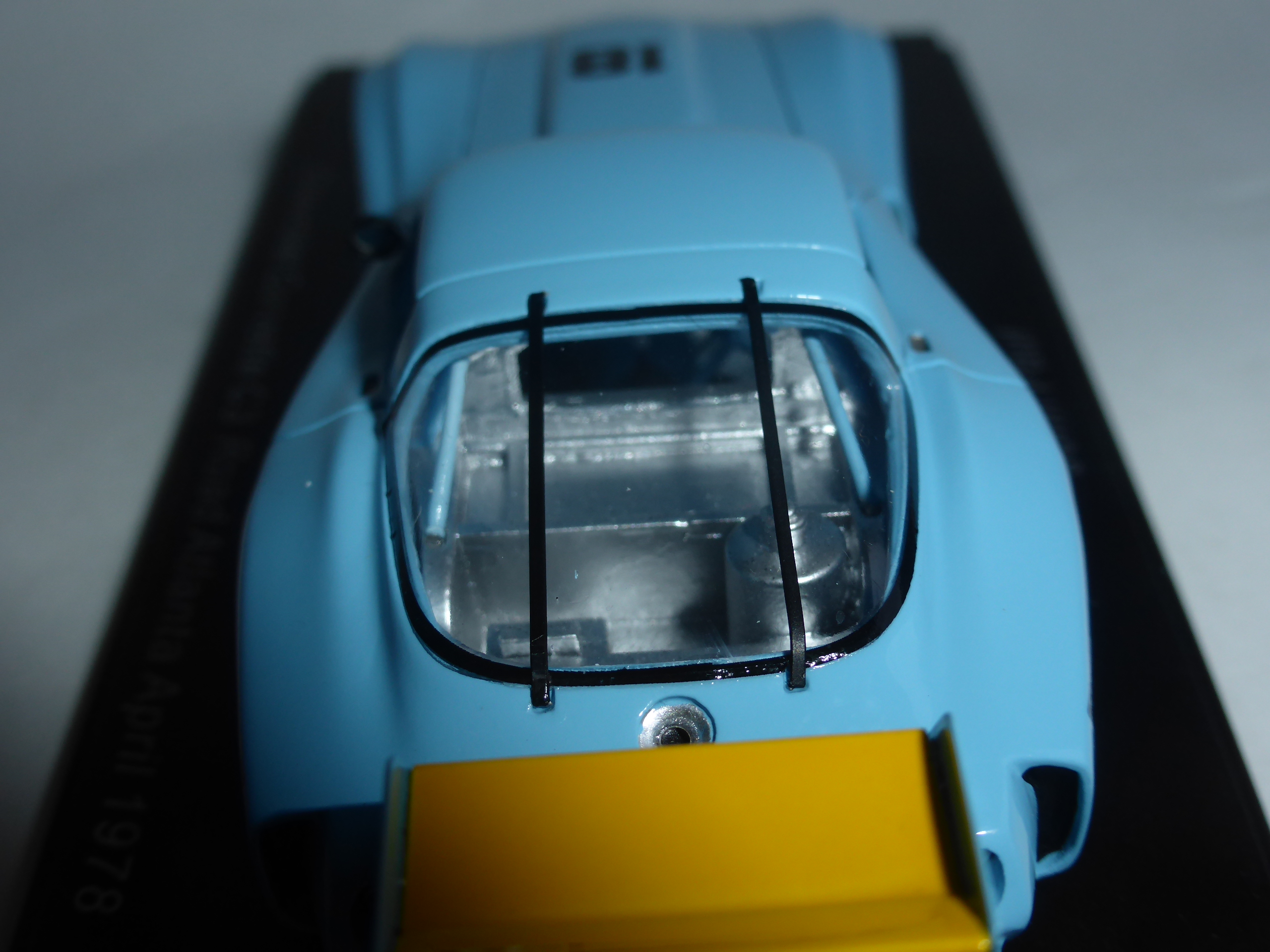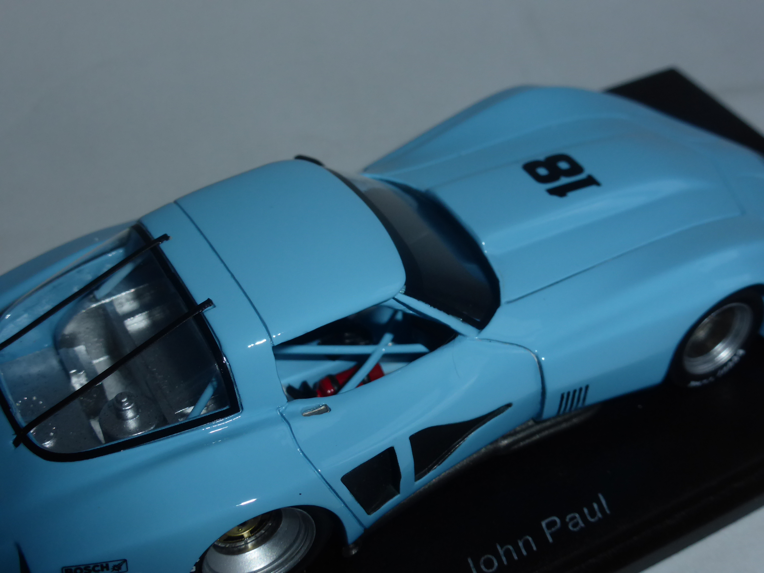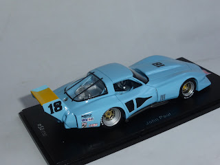 Ci troviamo di fronte ad uno Spark nella sua forma migliore: perfetta la verniciatura, nel caratteristico celeste carico delle auto di John Paul, e molto belli anche particolari quali l\’ala posteriore, con le paratie in fotoincisione, e i cerchi, verniciati in alluminio opaco con pastiglia centrale dorata. Approfittando anche della documentazione fornita da Canepa che ha restaurato in anni recenti la vettura, riportandola alla configurazione del 1978.