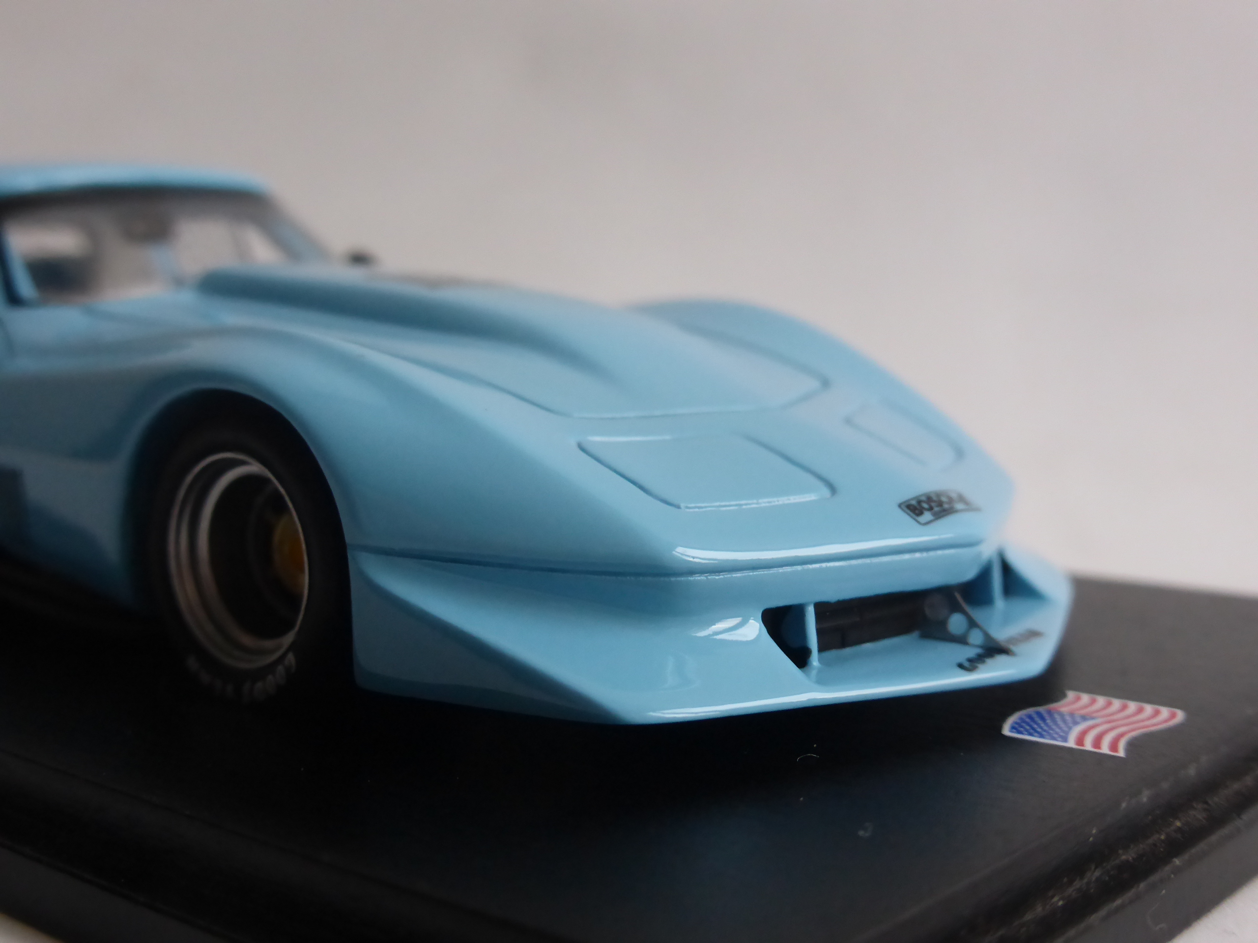 La versione scelta da Spark per il primo modello della SuperVette è la gara del debutto a Road Atlanta. Si tratta di un\’edizione per il distributore americano, in serie limitata a 750 esemplari numerati, che non sono pochissimi per un\’uscita \”nazionale\”: segno che Spark prevedeva di piazzarne facilmente parecchie, e così è stato. E\’ poi verosimile che altre versioni usciranno nel corso dei prossimi mesi e del resto le varianti possibili non mancano. La versione di Road Atlanta è una delle più \”spoglie\”, con i numeri di gara, gli sponsor della serie IMSA piazzati sul pannello del passaruota posteriore e nulla più.