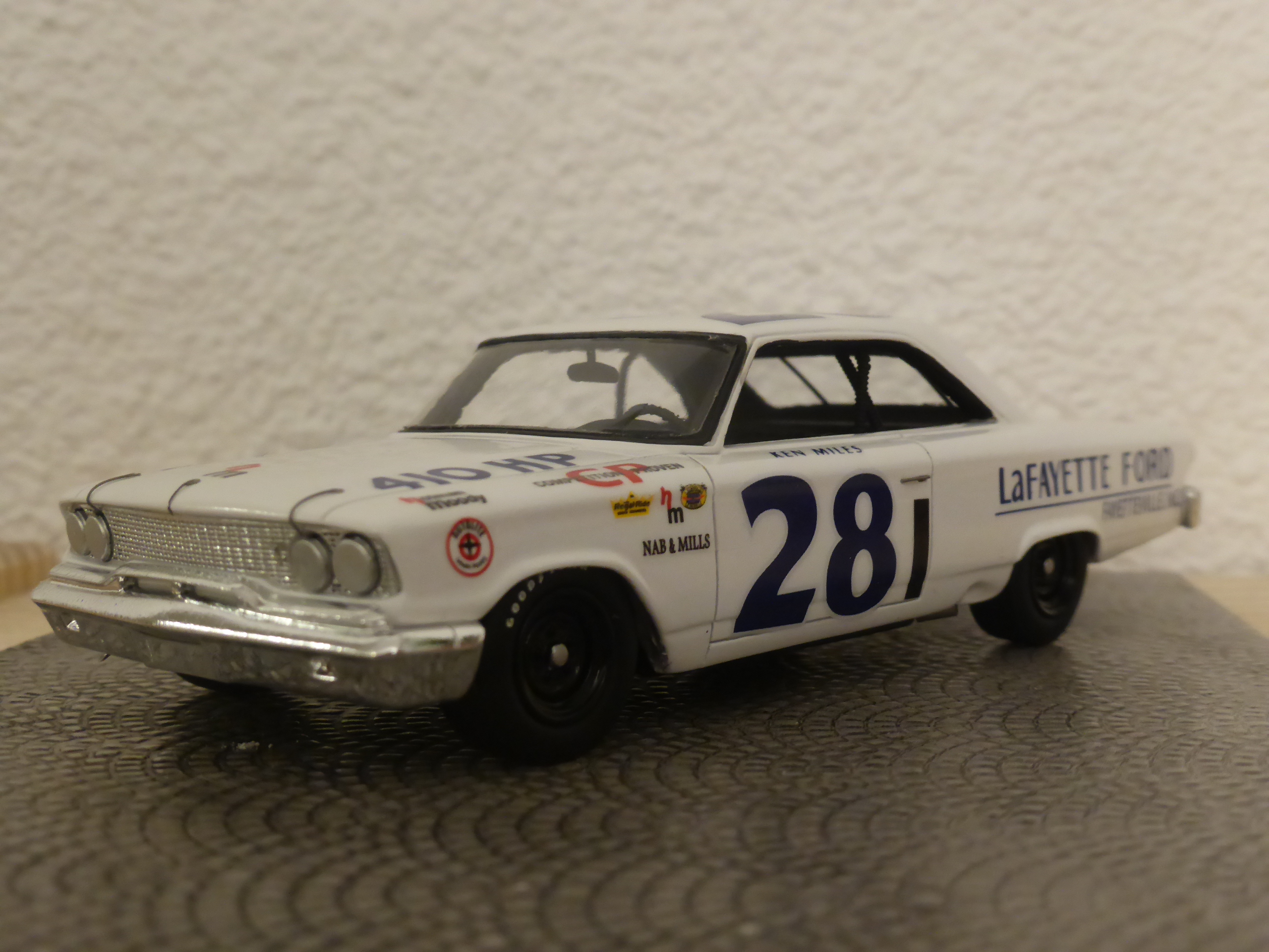 Il film Le Mans \’66 dell\’anno scorso ha avuto, fra i suoi meriti, quello di far conoscere meglio la figura di Ken Miles e Spark non si è lasciata sfuggire l\’occasione di riprodurre la vettura con la quale il pilota britannico partecipò alla sua unica gara NASCAR. Fu a Riverside, nell\’autunno del 1963. Gli antefatti, probabilmente, sono noti a molti, ma vale forse la pena ricordarli. All\’inizio del 1963 Miles aveva iniziato una collaborazione con Carrol Shelby, come pilota e come direttore del team, struttura di punta dei programmi sportivi Ford dell\’epoca. Insieme a Dave MacDonald, Miles era diventato una figura importante per l\’immagine della Ford.