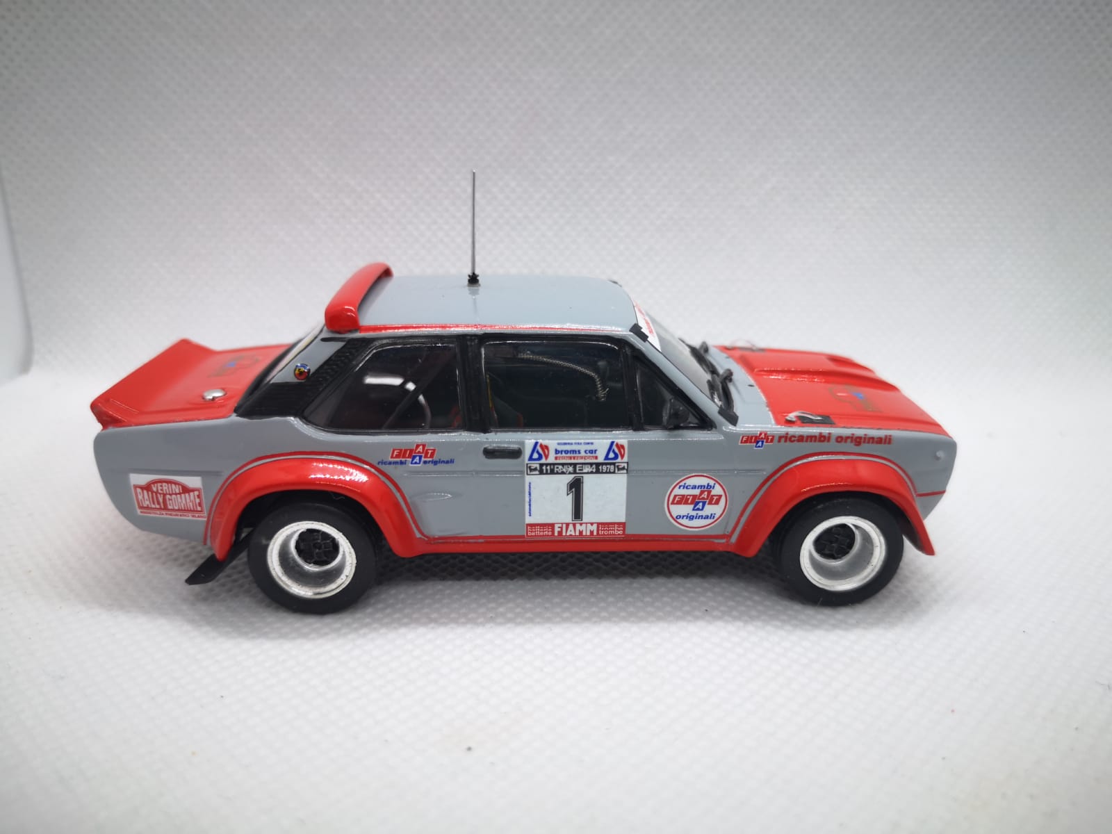 In questo periodo Fabrizio De Gennaro si sta dedicando alle Fiat 131 Abarth da rally. Nei giorni scorsi vi avevamo già presentato la vettura spagnola di Zanini, realizzata su base Solido. Oggi è la volta dell\’auto condotta da Maurizio Verini al Rallye dell\’Elba del 1978, molto elegante nei suoi colori grigio e rosso (il rosso è stato ottenuto non con decals ma in verniciatura). La base stavolta è Ixo.