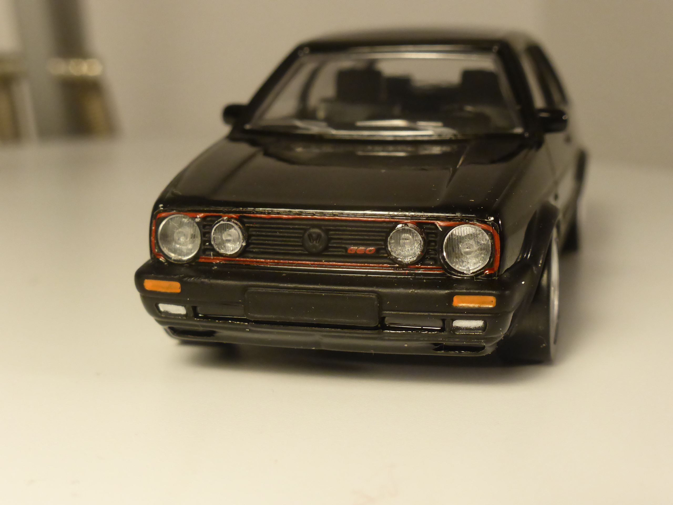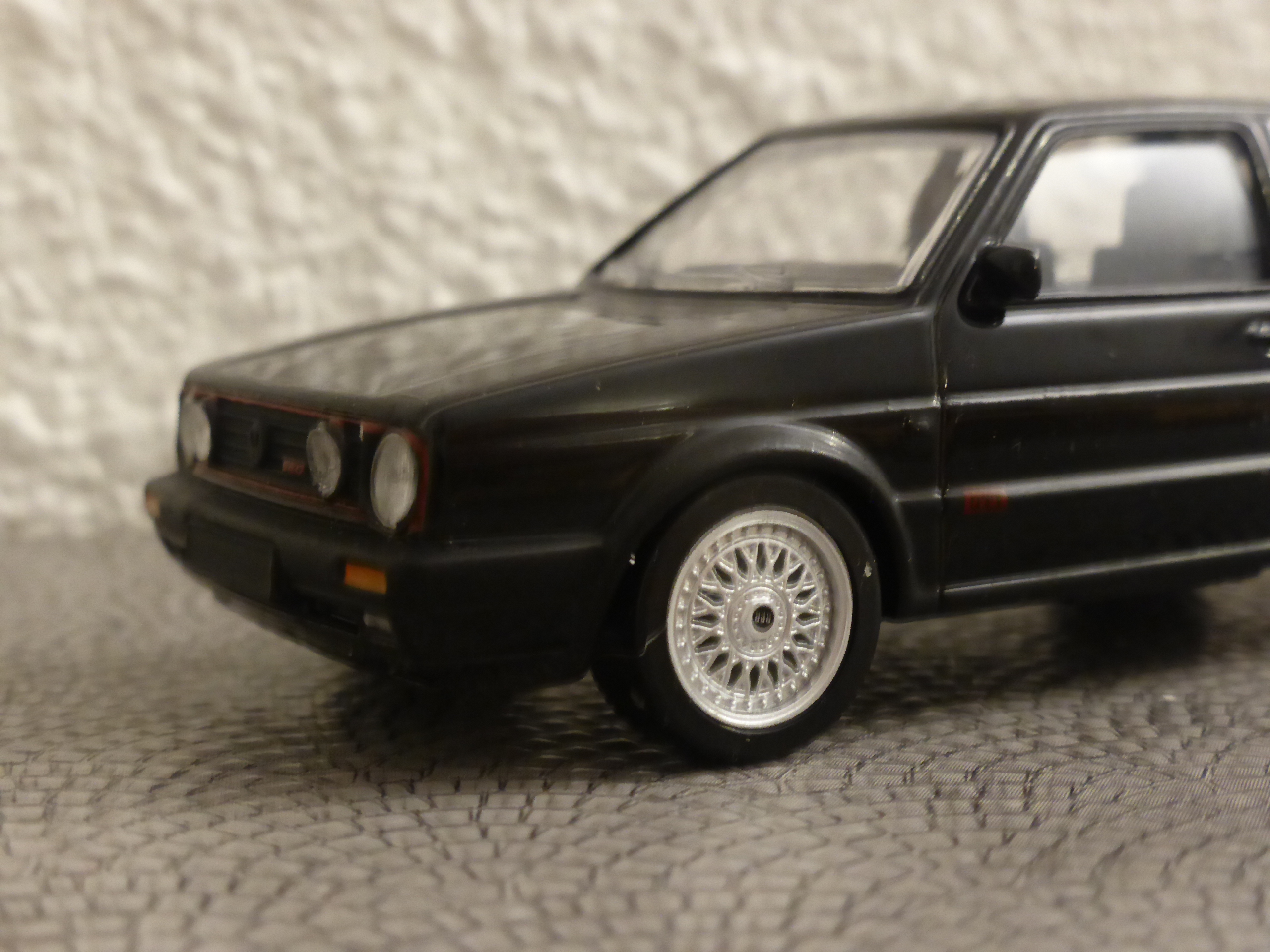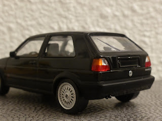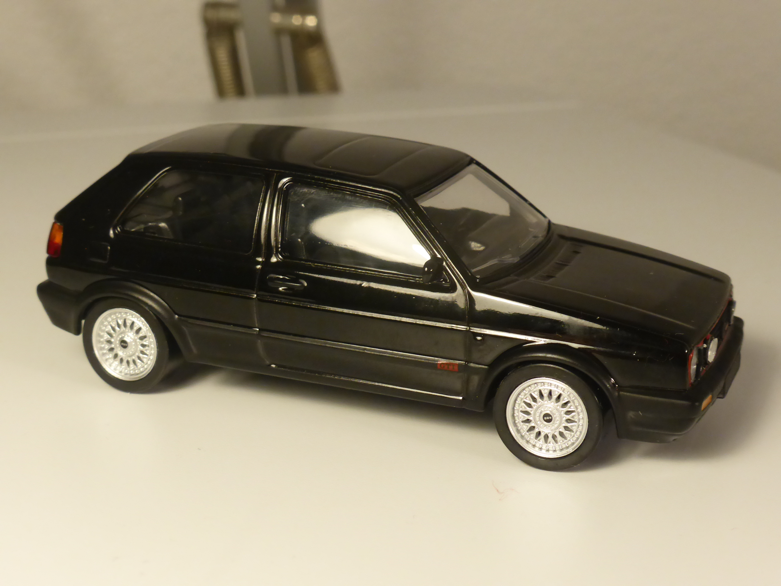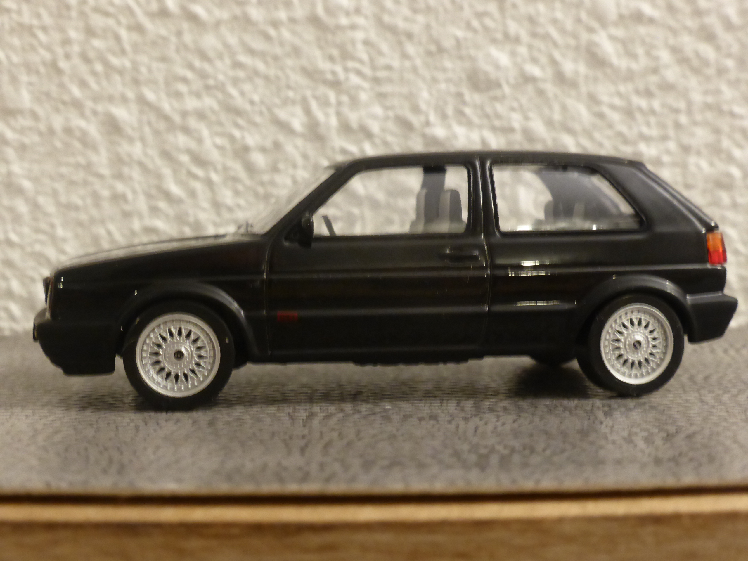 Presentiamo qui la G60 in nero, un colore tipico delle Golf anni ottanta. Le forme sono davvero convincenti, e il modello ha la caratteristica grinta dell\’auto vera.