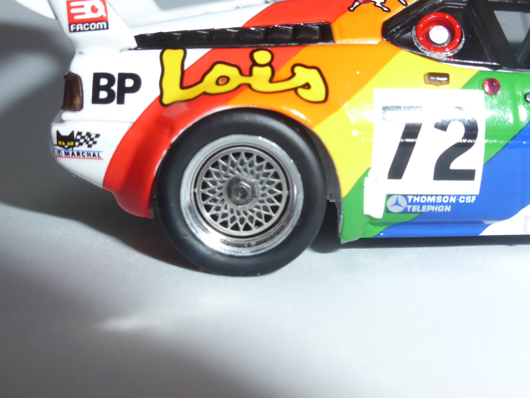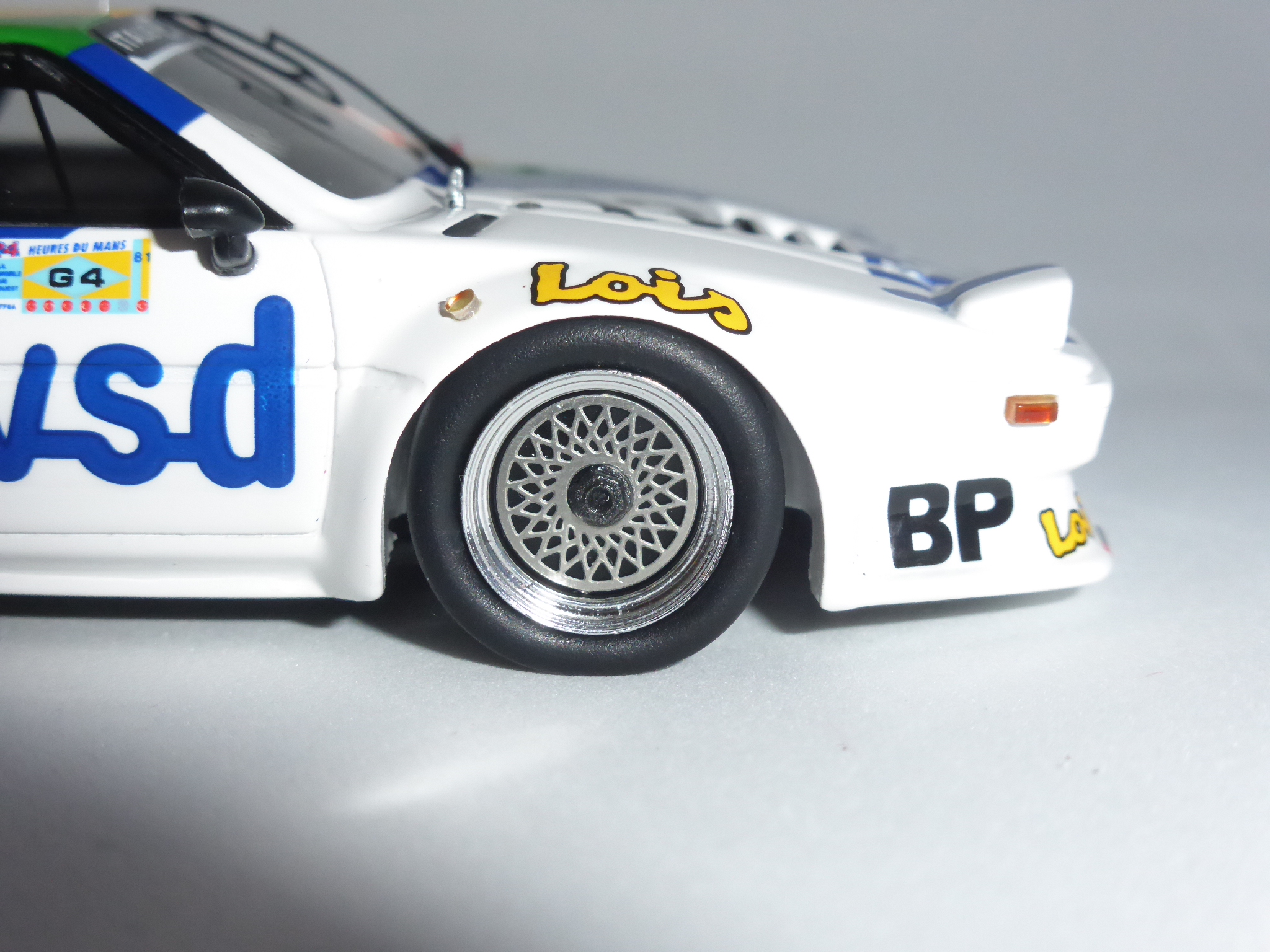 Una mossa originale, forse anche troppo, che a qualcuno non andrà giù. Fatto sta che ancora una volta Spark, che arrivava dopo una lunga teoria di altri fabbricanti già attratti in passato da questa bella livrea (in primis BAM con le sue decals per il Solido), ha voluto cercare il particolare che colpisce. Per il resto, il modello non si discosta dalla qualità media di Spark: montato bene, verniciato perfettamente, presenta alcune dimenticanze che per quanto piccole, si spiegano solo con la fretta con la quale i responsabili dei progetti sono costretti a lavorare. I cerchi BBS di questo tipo continuano peraltro a convincermi poco, con la parte centrale fotoincisa che entra troppo in profondità nel cerchio, lasciando anche uno spazio vuoto attorno a sé. Tutto sommato, dopo la Carte de France con i contorni vetro neri anziché bianchi, la serie delle M1 di Le Mans di Spark continua a non essere del tutto soddisfacente.