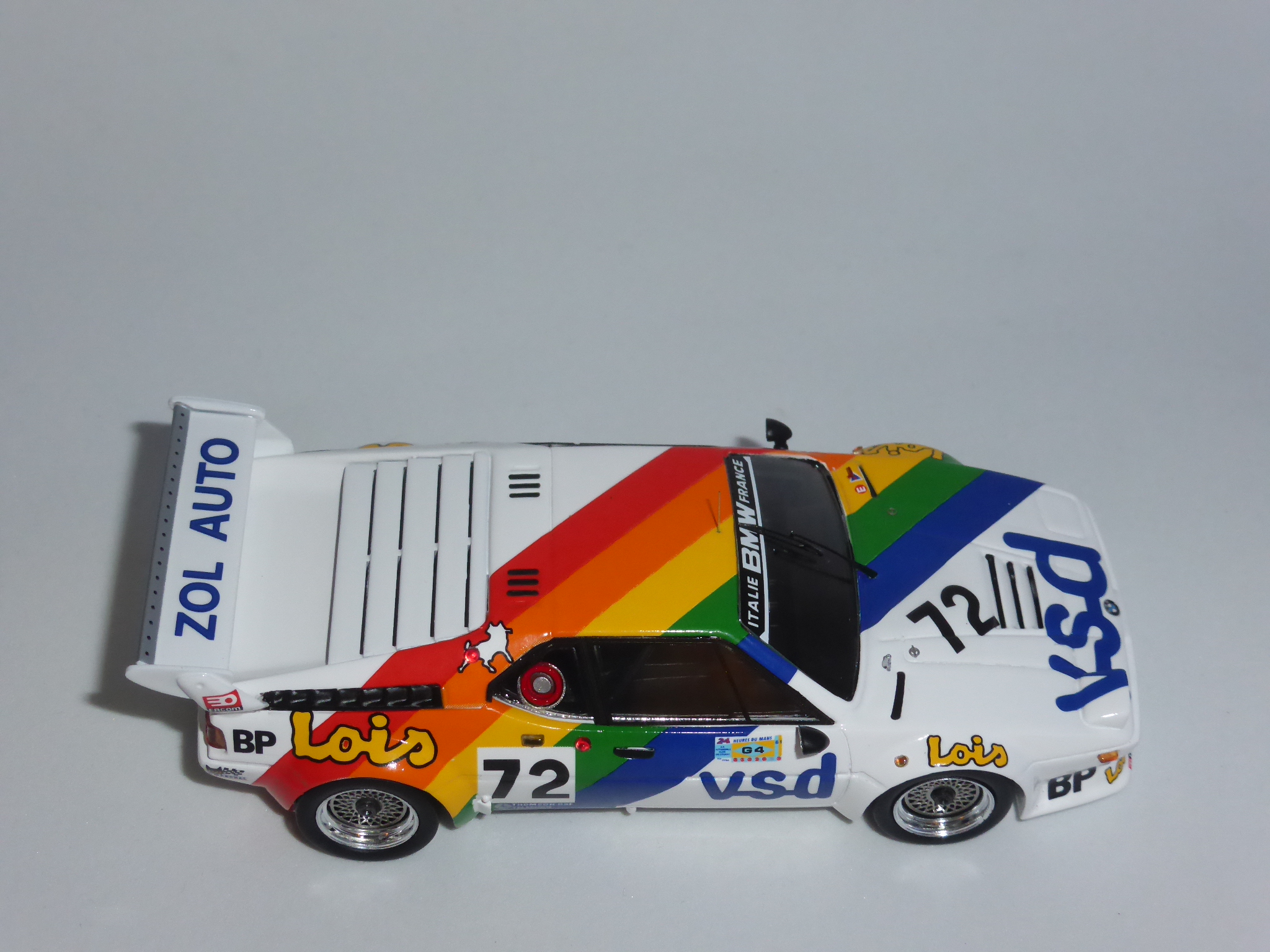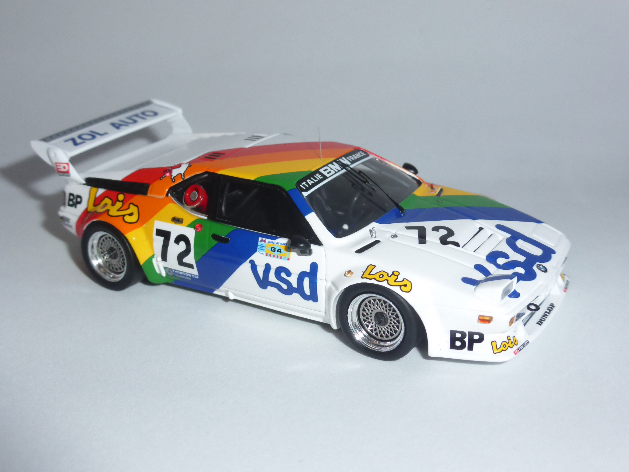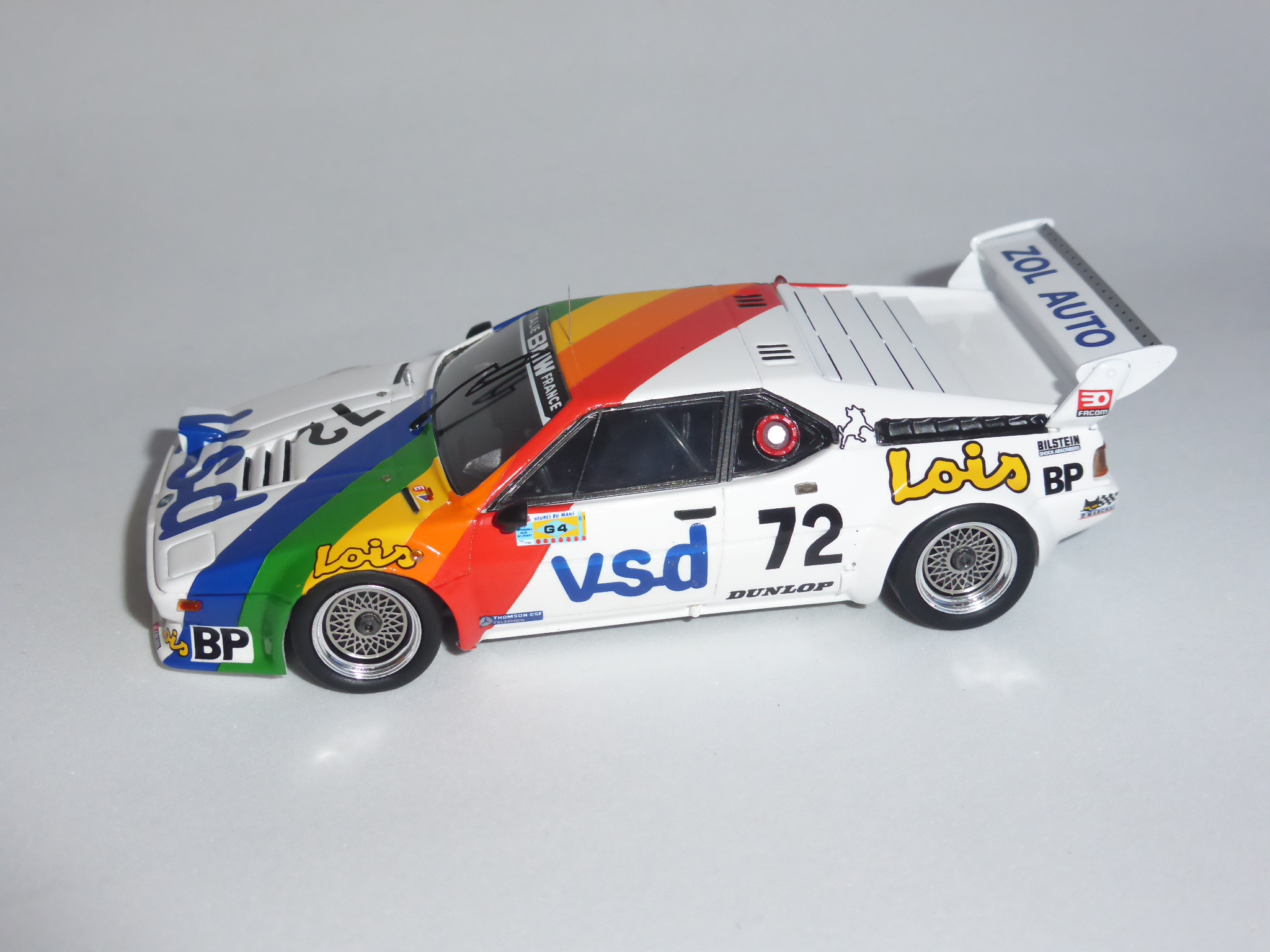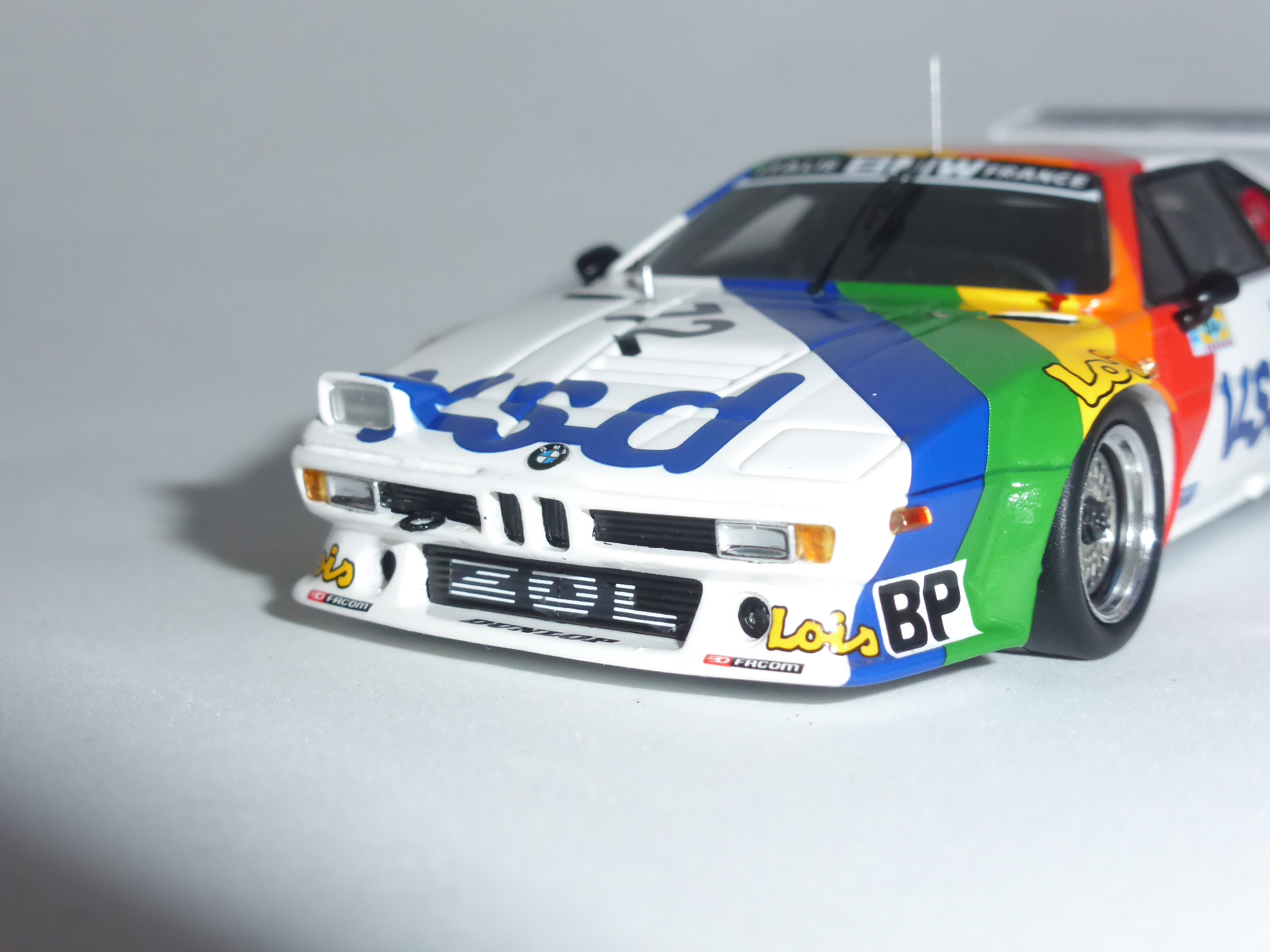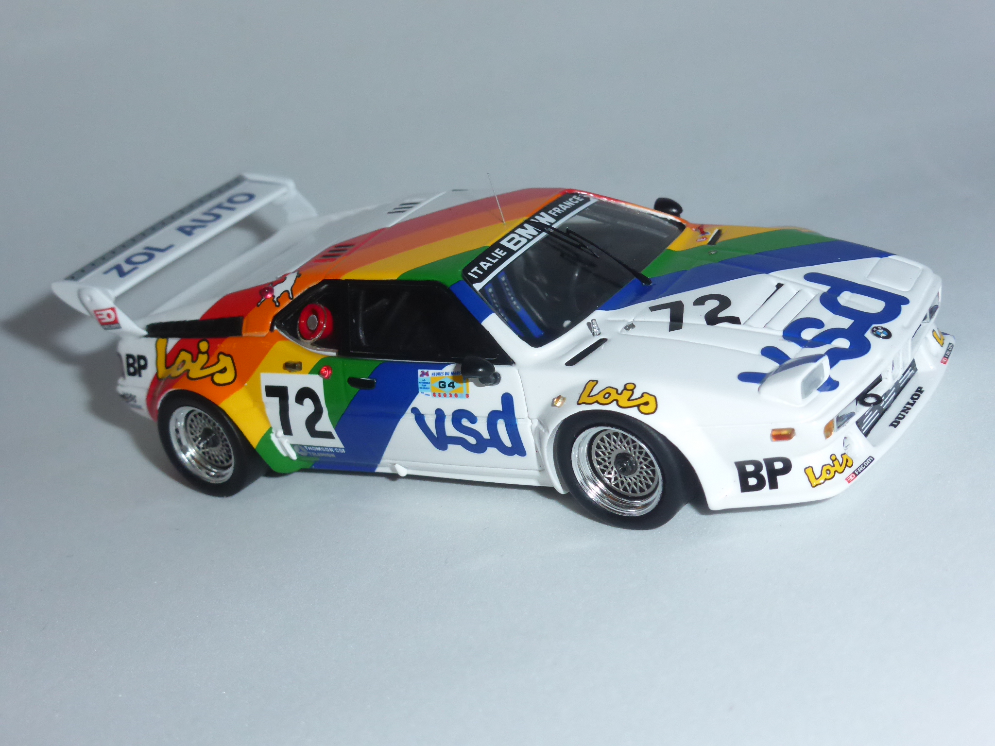 E\’ passata una vita e quella battuta mi fa ancora ridere. Oggi, a distanza di quindici anni e più, un\’altra BMW con la vista disturbata fa capolino (o occhiolino…?) nel panorama dei modelli 1:43. Fedele alla sua passione per i colpi un po\’ a effetto, Spark fa uscire la BMW M1 Gruppo 4 VDS di Le Mans 1981 con un faro in posizione aperta e l\’altro normalmente riposto nel suo vano.