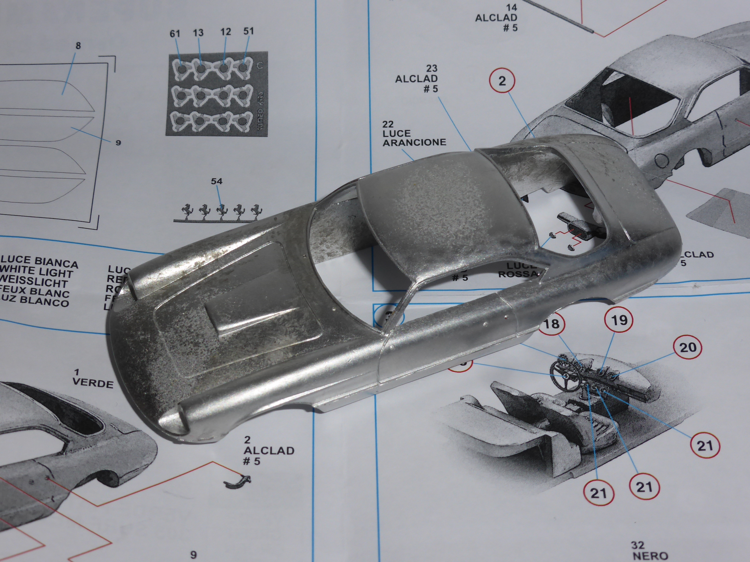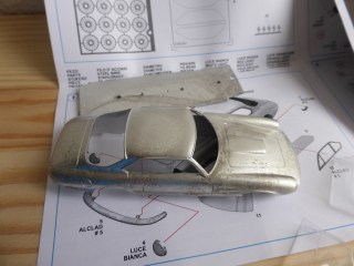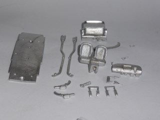 Ormai Tameo è uno dei leader del metallo bianco. E\’ stato uno spettacolo ammirare su Facebook la foto di tutte le carrozzerie allineate dopo la fusione. Il kit si compone di pochi pezzi: oltre alla carrozzeria, un pianale (semplice, senza scritte o graffiti… peccato!), un cruscotto, il gruppo sedili-tunnel centrale, paraurti e poco altro. A proposito dei paraurti, peccato non averli previsti nichelati, come si faceva un tempo. Pazienza, le vernici oggi a disposizione dei modellisti fanno miracoli.