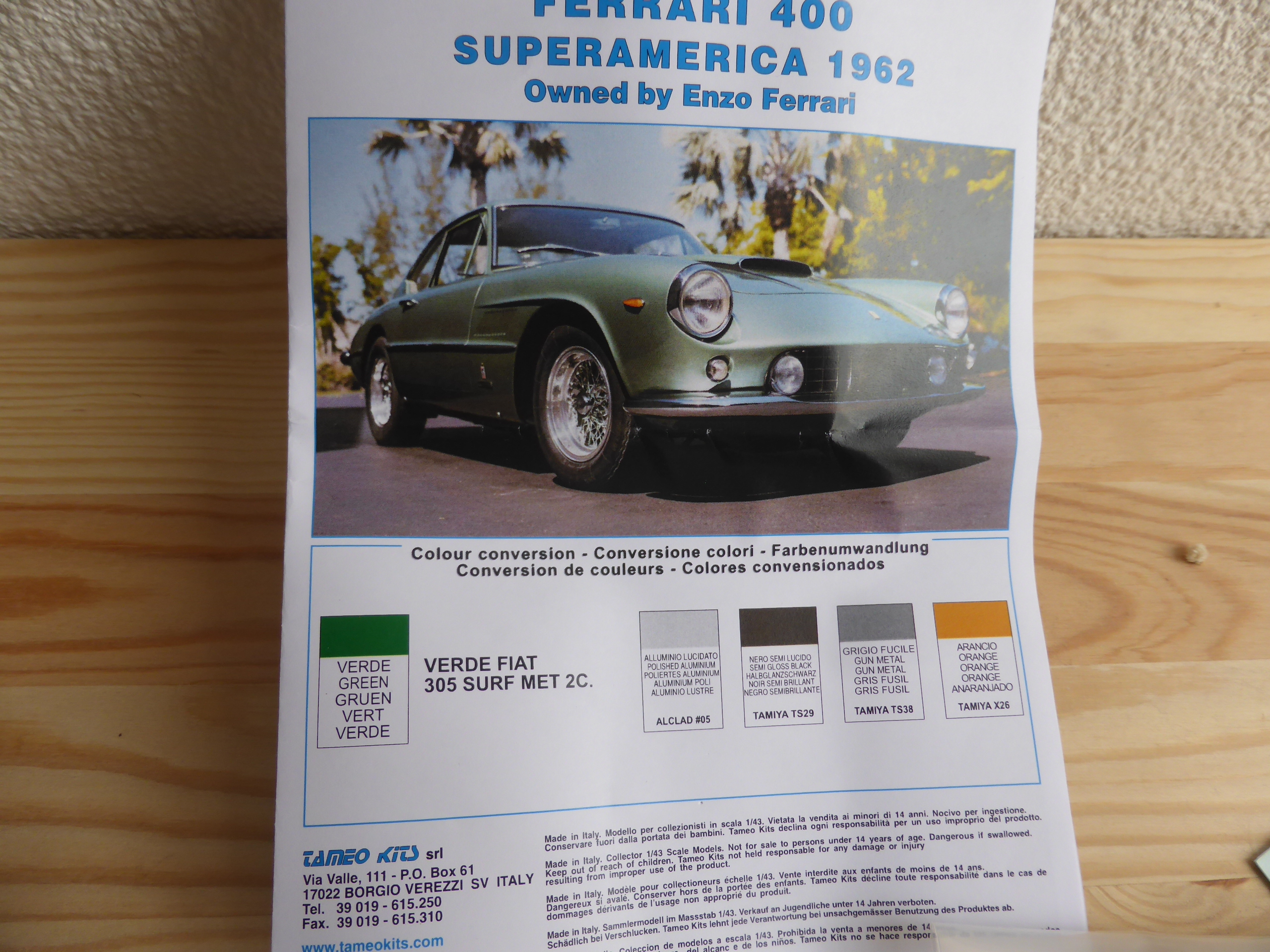 C’era molta attesa attorno a questo kit, i cui primi esemplari i rivenditori hanno ricevuto in questi giorni. La storia del modello è almeno particolare quanto l’auto vera. Non molto tempo fa, Luca Tameo trovò in un cassetto un master abbandonato da una trentina d\’anni: la Ferrari 400 Superamerica utilizzata come auto personale dal Commendatore. Negli anni ottanta Tameo Kits era un marchio giustamente famoso anche per alcuni bei modelli di vetture GT e Sport-Prototipo, prima che Luca si dedicasse esclusivamente alle monoposto.