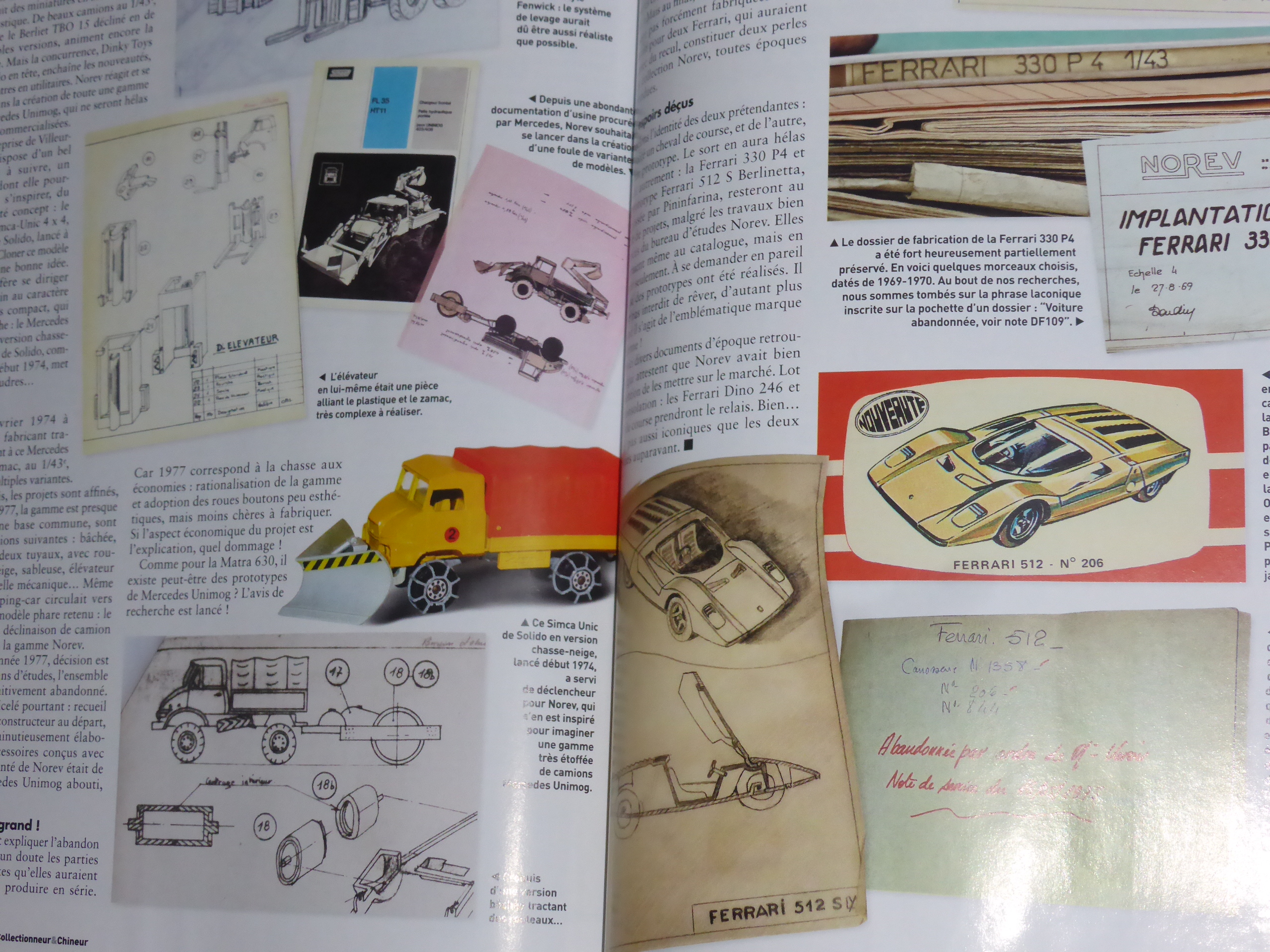 La pubblicazione di Collectionneur & Chineur è un\’ottima fonte di informazioni anche inedite, presentando documenti che fino ad oggi erano rimasti sconosciuti. Si rievocano inoltre temi essenziali per comprendere la vita dell\’azienda, come le scente produttive e le strategie pubblicitarie. L\’evoluzione dei modelli è sempre ben contestualizzata, con frequenti riferimenti alla collaborazione tra Norev e i costruttori di auto (molto interessante, ad esempio, la riproduzione dei carteggi con la De Tomaso per la commercializzazione della Pantera in 1:43).
