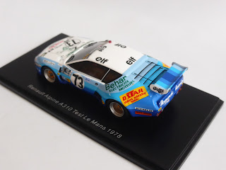 Le sortite di Spark non sono mai casuali. Giusto un anno fa il blog parlava dell\’Alpine-Renault A310 GTP di Le Mans 1977, novità che andò ben presto esaurita visto l\’interesse specifico della versione (l\’articolo potete leggerlo a questo link: http://grandiepiccoleauto.blogspot.com/2020/04/un-poisson-pas-comme-les-autres-lalpine.html ). Ebbene, oggi seconda parte. Stessa auto, stessa gara un anno dopo, il 1978. Abbandonata la livrea ittica, l\’Alpine A310 di Bernard Decure si presenta con una nuova decorazione tipica di quell\’epoca, con una banda di varie tonalità di blu degradanti dall\’azzurro al celeste, un po\’ come quelle che si vedevano sulle Ford Zakspeed, salvo che in quel caso il colore dominante è il bianco e non il nero.