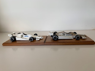 Ricordo scocche stampate in resina poliestere (l\’unica all\’epoca reperibile sul mercato) piene di bolle d\’aria tutte da stuccare. I pezzi in metallo bianco fusi da Claudio Riva della Meri Kits. Non esistevano le fotoincisioni. Fiancate e paratie laterali degli alettoni erano tagliate a mano partendo da lamierino metallico. Verniciatura rigorosamente con bombolette trovate in colorificio. Le gomme, quelle disponibili sul mercato. Le decal erano realizzate con le lettere trasferibili della Letraset che si trovavano nelle cartolerie più fornite. Abbiamo fatto poche decine di pezzi della versione bianca di Patrese al GP Brasile del 1978 e di quella bianca ed oro del GP Sudafrica 1978 quando Patrese ha dovuto fermarsi mentre aveva la corsa in mano\”.