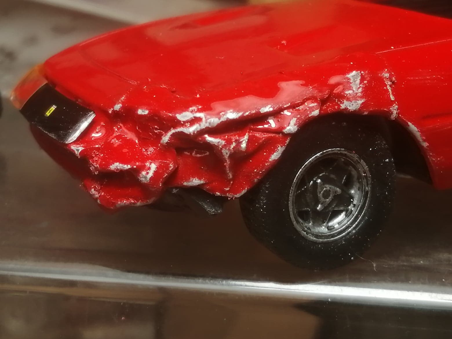 Iscritta sempre dal NART per Ricardo Rodriguez-Cavazos e Bob Grossman non riuscì a qualificarsi, vittima anche di alcune escursioni fuori pista che non le fecero certo un gran bene. L\’elaborazione di Axel è stata piuttosto radicale ed ha previsto la riproduzione dei danni riportati nel corso delle prove, simulati con del foglio di alluminio. Ne è venuto fuori un modello suggestivo, importante anche per la storia della Ferrari a Le Mans.