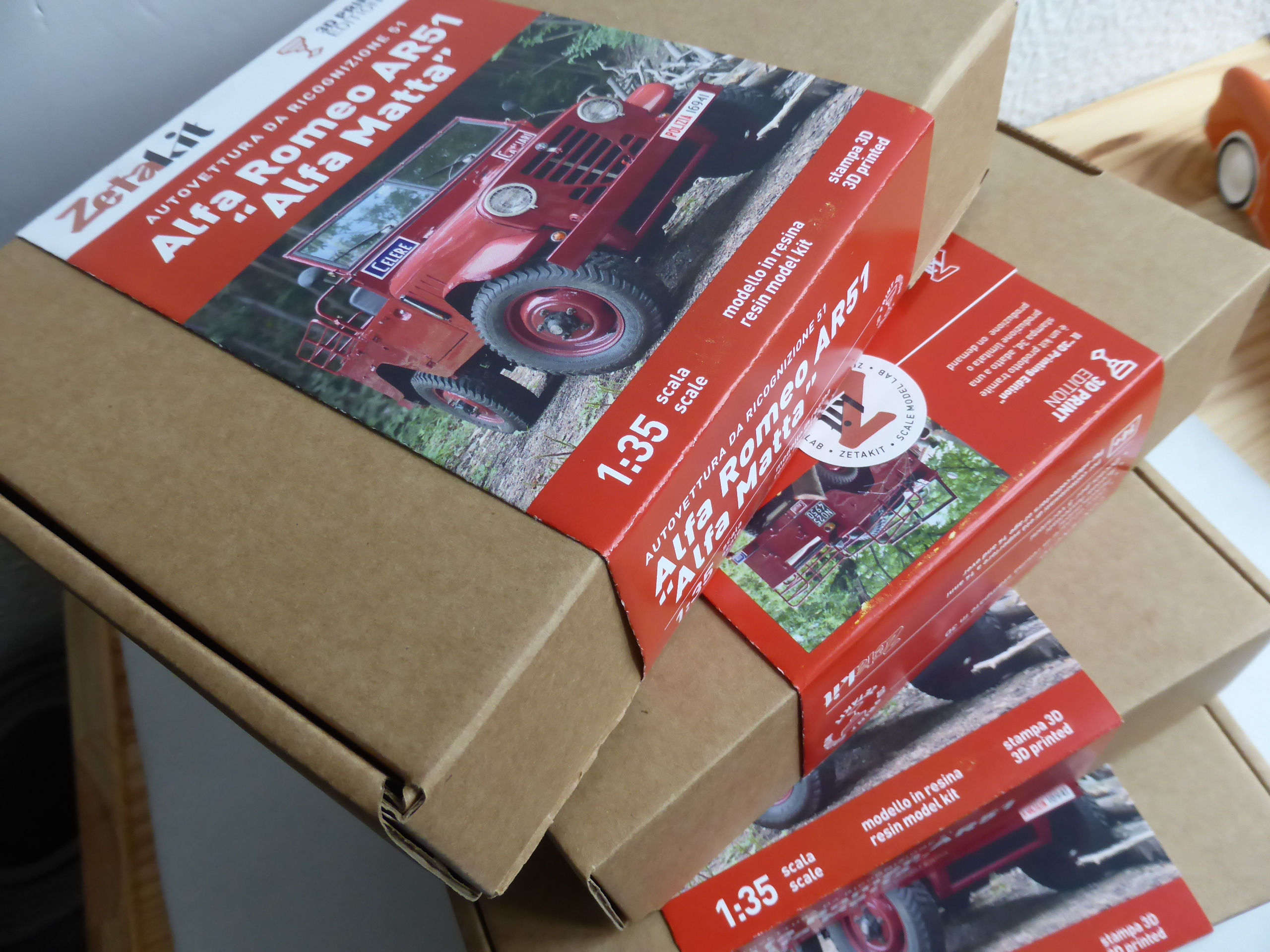 Già uscita da qualche tempo, l\’Alfa Romeo AR51 Matta fa parte di quella serie di scatole di montaggio che ZetaKit commercializza direttamente. Il modello, in resina scala 1:35 è una \”3D print edition\”, e presenta completamente stampato con quella tecnica. Prima di tutto, una nota di merito sulla confezione: semplice ma elegante, la scatolina è tenuta chiusa da una fascetta pieghevole sulla quale sono riportate su una facciata le istruzioni di montaggio e sull\’altra alcune foto della vettura reale e la sua storia, molto ben scritta e dettagliata.