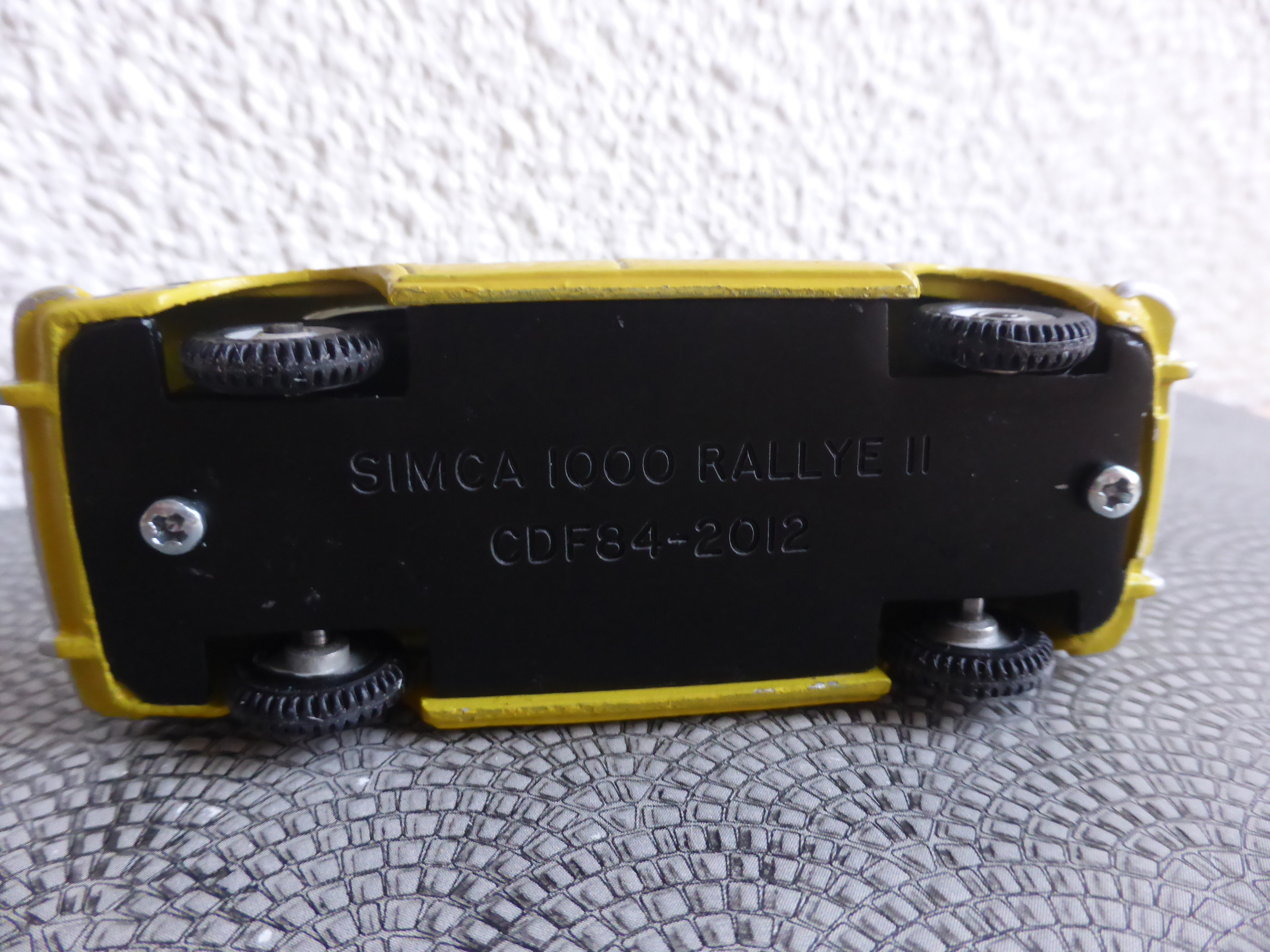 Il modello è volutamente semplice e anche la decorazione specifica con la bande nere posteriori non reca la scritta Rallye 2 ed è pure assente il logo rettangolare sulle fiancate. Il cofano però è correttamente verniciato in nero opaco. Il fondino è fissato alla scocca con due viti a croce.