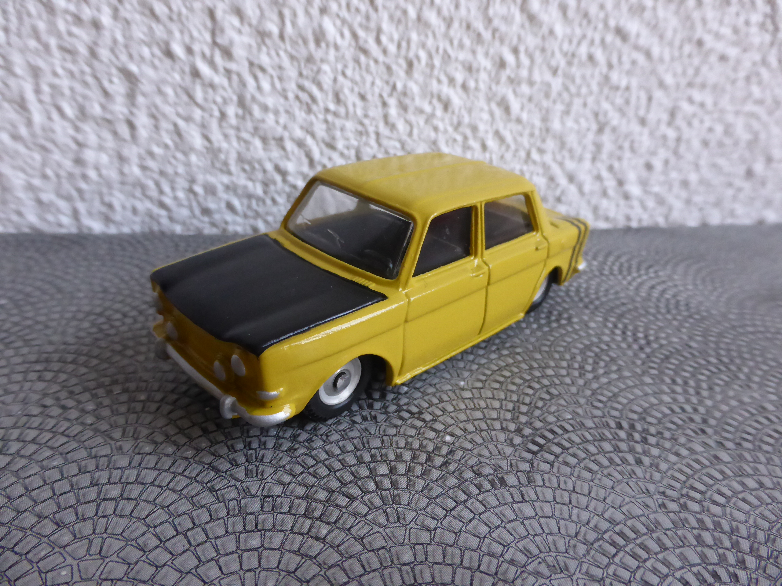 Quest\’occasione perduta ha turbato i sonni di molti collezionisti, che hanno cercato di rievocare, in svariati modi, questo modello-chimera (che è in buona compagnia, anche restando alla sola Dinky France; per maggiori approfondimenti sul tema vi invito a leggere il dottissimo blog dell\’Auto Jaune). Nel 2012 il Club Dinky France diffuse una riproduzione in serie limitata della Rallye II, in metallo bianco, con vetri in plastica, ruote tornite,  pneumatici marchiati Dunlop e verniciata in uno dei colori caratteristici, il giallo mostarda; e che sia una Rallye II e non una Rallye I lo conferma la presenza dei rostri sul paraurti anteriore.