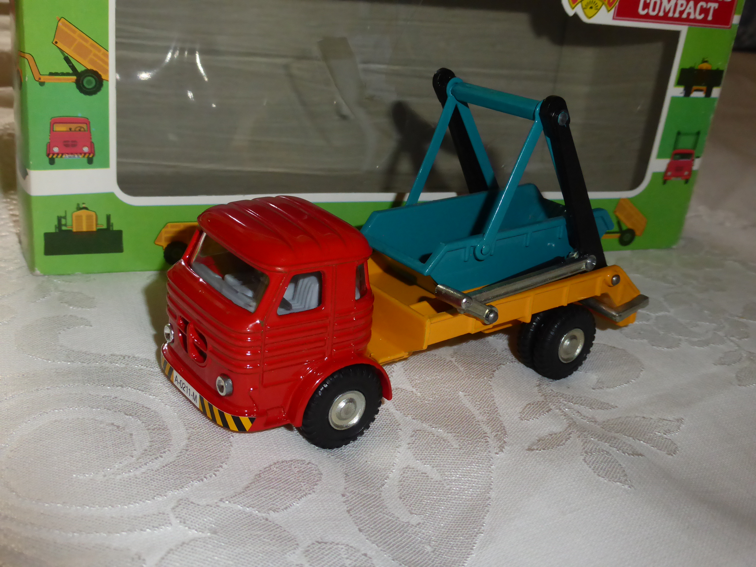 La penisola iberica rappresenta un terreno ancora abbastanza fertile per chi ricerca tracce del passato o per lo meno qualche stranezza da riportare a casa dopo un viaggio. In un negozietto di Portimao ho trovato alcuni vecchi Joal realizzati per il Club Miniaturas Compact. Non è la produzione originale, si tratta ovviamente di riedizioni, comunque abbastanza datate. L\’intramontabile cabina Pegaso con la combinazione benna basculante presentata in una scatola che comprende imballo in polistirolo e parte esterna in cartone con rhodoid. La stampa della parte cartacea della confezione si deve alla storica Litografia Platival S.A. di Alicante, tuttora attiva. Questi modelli più vecchi convivono abbastanza frequentemente con prodotti Joal recenti anche in grandi catene come Centroxogo in Portogallo. Un segno di un passato ancora tangibile nonostante la crescente uniformazione globale.