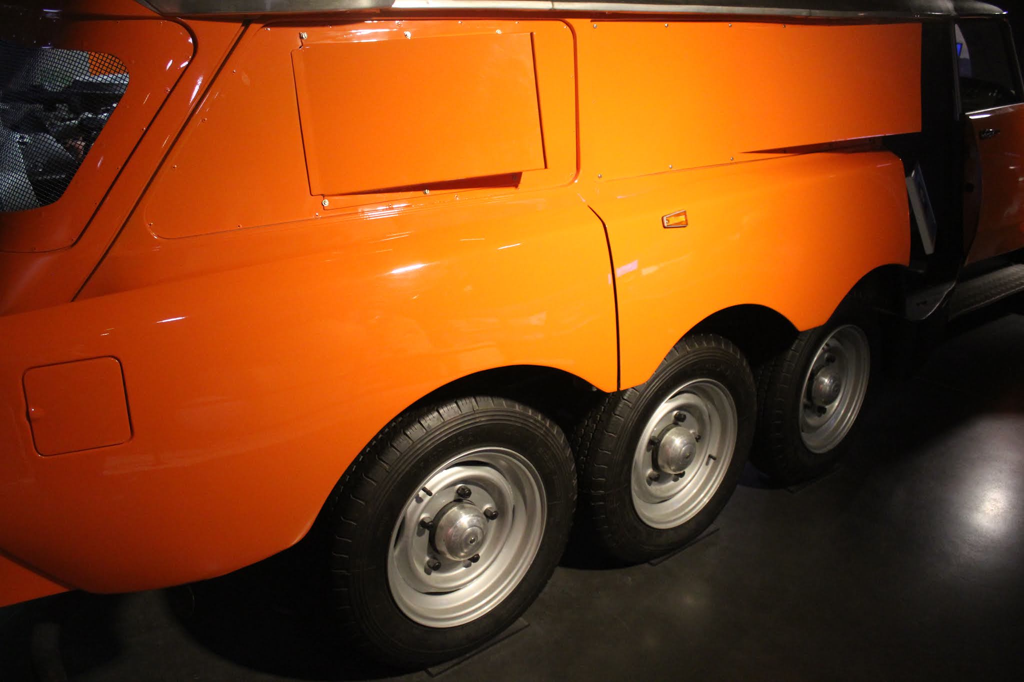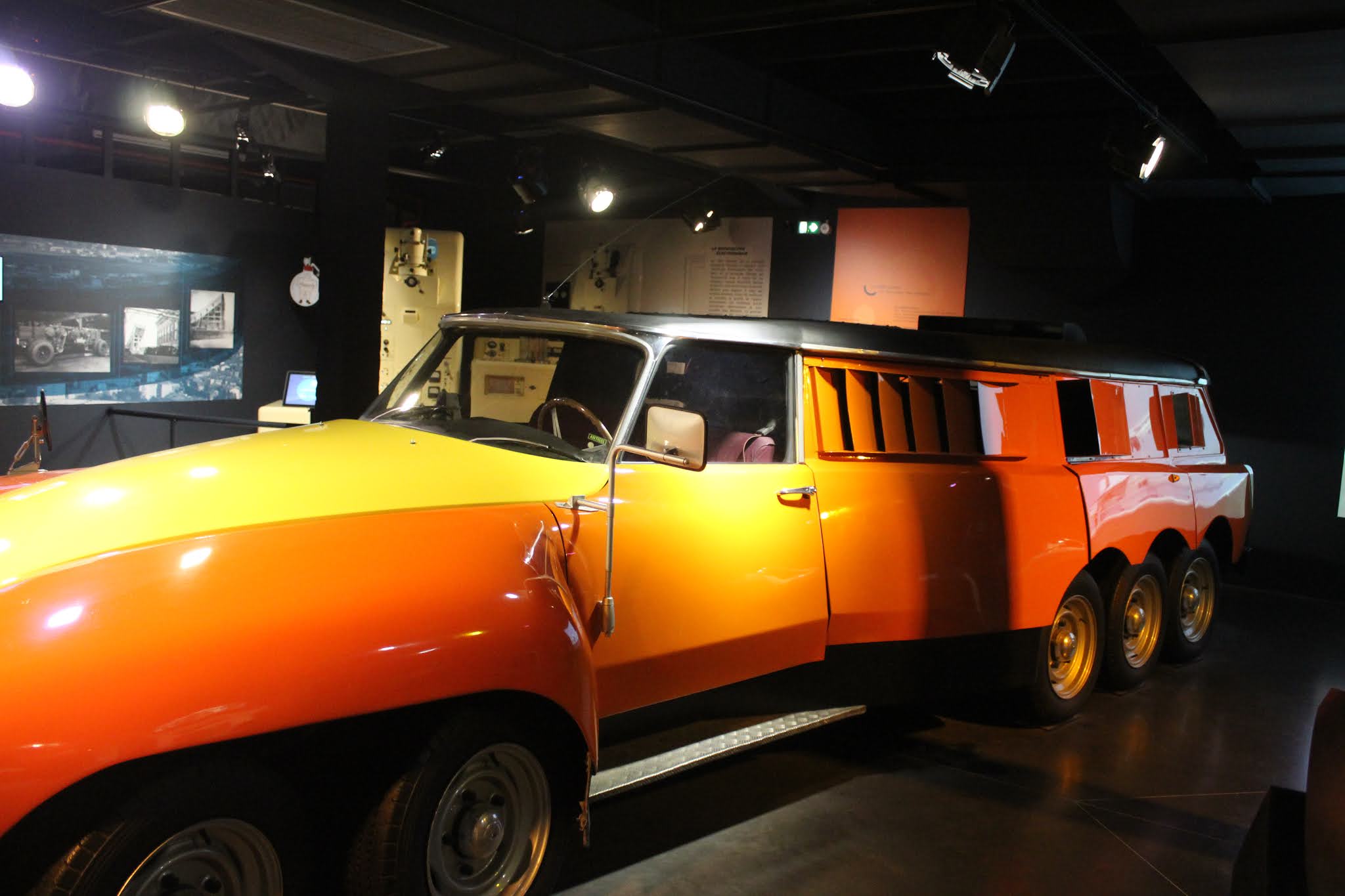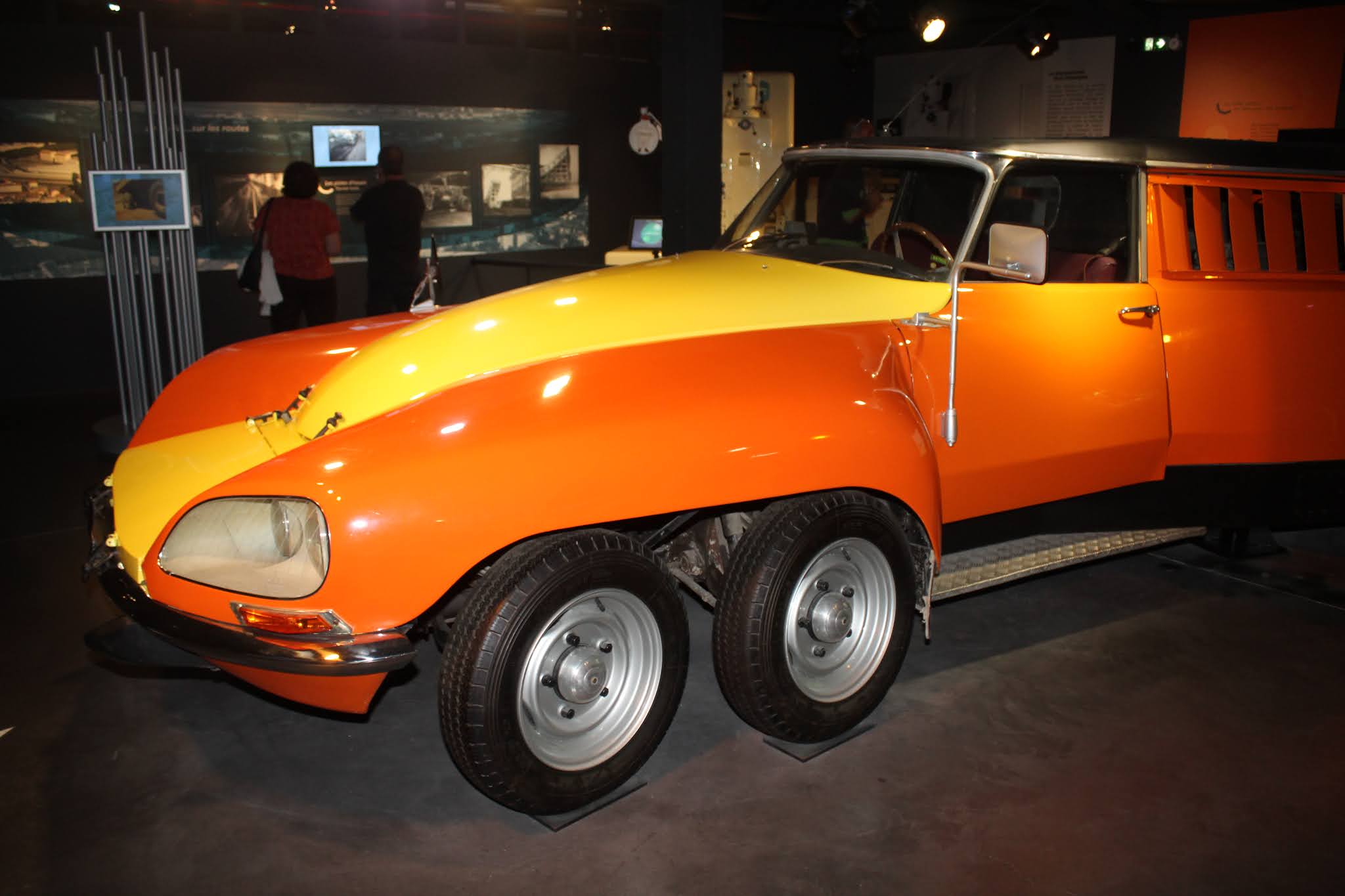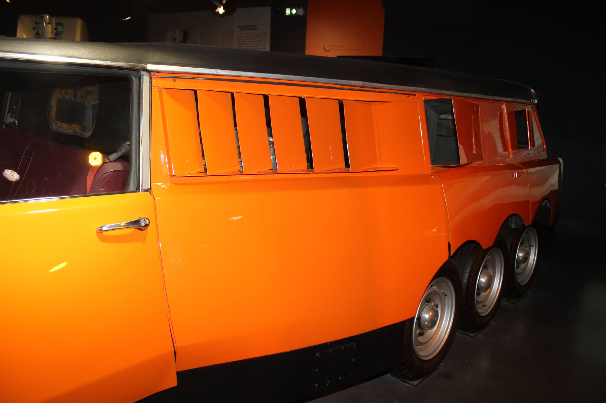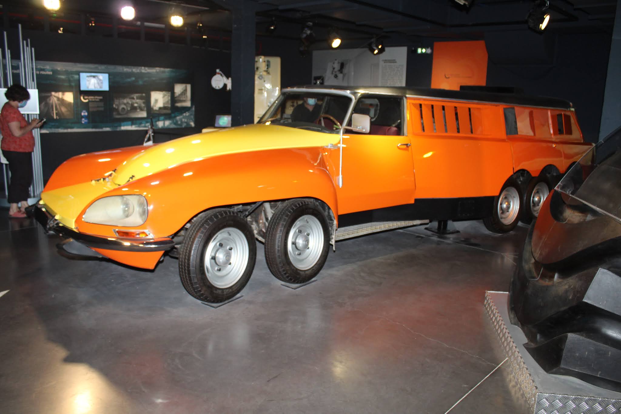 Il soggetto è abbastanza conosciuto ed è stato anche già riprodotto più volte in scala, ma può valere la pena pubblicarne una gallery. Si tratta del PLR (poids lourd rapide) “Mille pattes”, utilizzato da Michelin a partire dal 1972 come veicolo test per pneumatici di mezzi pesanti. Le forme potevano ricordare quelle della Citroen ID19 Break, ma con dimensioni davvero impressionanti: 7,27 metri di lunghezza, 2,45 di larghezza e dieci ruote: quattro davanti e quattro dietro come gomme da 205/55×16. Al suo interno erano sistemati equipaggiamenti e macchinari, molto sofisticati all’epoca, per mettere alla frusta le gomme destinate ai camion. La PLR Michelin era equipaggiata con due motori Chevrolet V8 da 350ci da 250 cavalli ciascuno; la trasmissione era sulle ruote posteriori e il cambio era un GM automatico a tre rapporti.