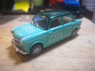 Avendo sotto mano una buona documentazione storica, è possibile realizzare elaborazioni relativamente semplici (ma tutt\’altro che banali) come questa, appena ultimata da Fabrizio De Gennaro partendo da una Fiat 1100/103 TV I serie da edicola, di cui trovate un\’immagine fra quelle pubblicate in questo thread.