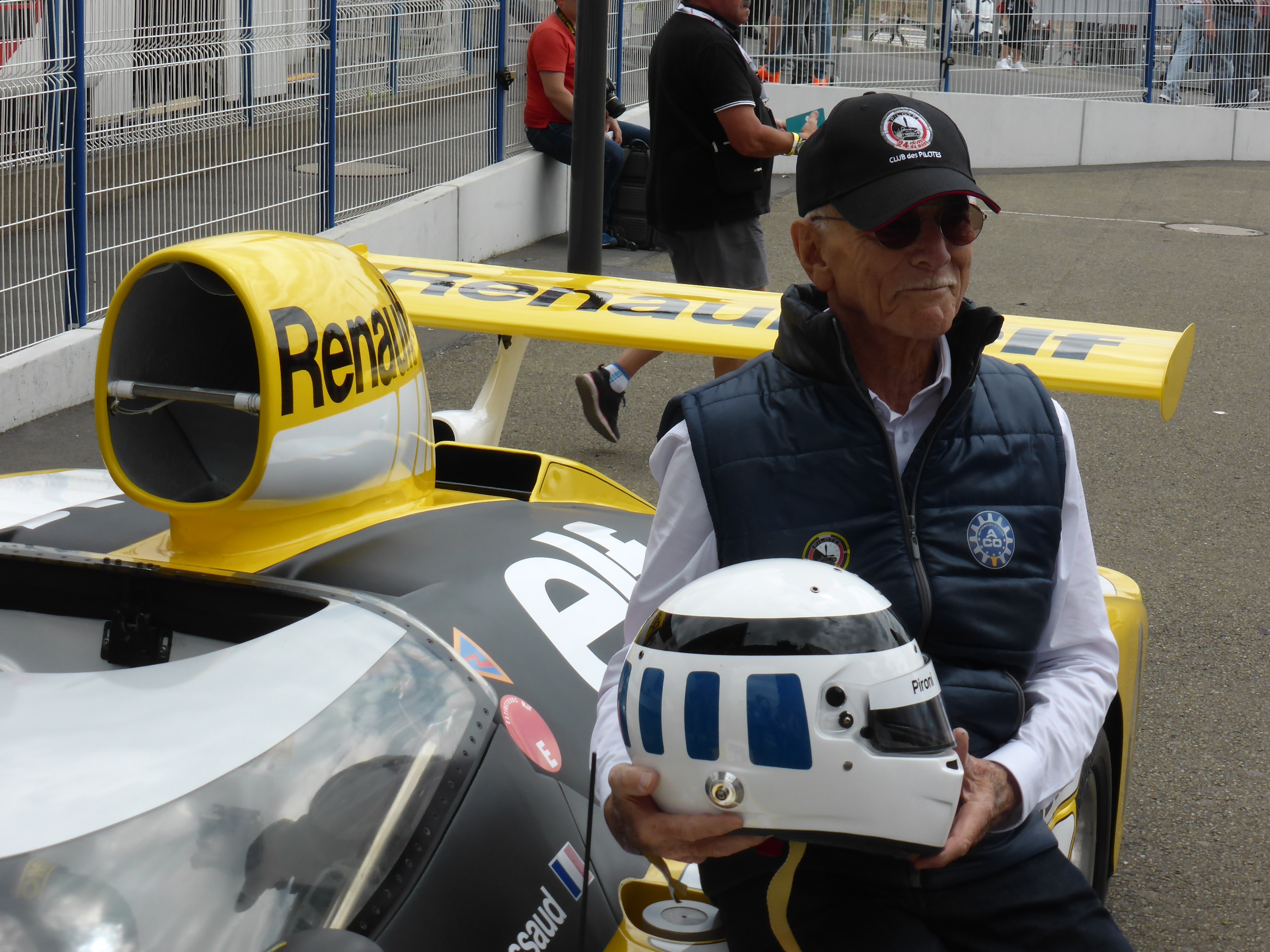 | Accanto alla Renault-Alpine A442B, con la quale aveva vinto a Le Mans nel 1978 insieme a Didier Pironi. Unite in un unico casco le decorazioni di entrambi i piloti (foto D.Tarallo) |