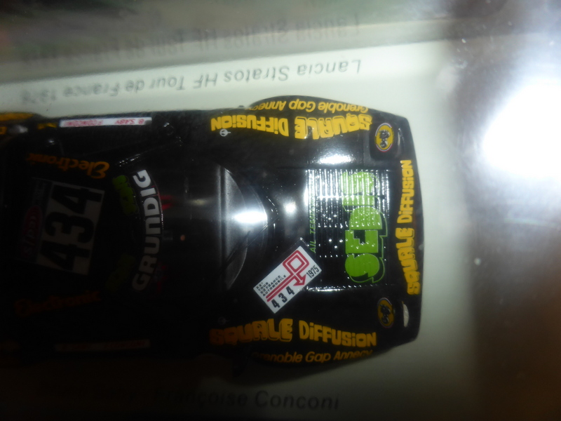 In effetti è molto fastidioso il film delle decals che sul nero si nota bene . Visto che siamo in tema Tour Auto, in contemporanea alla Stratos e’ uscita da Spark la 911 RSR della Verney, senza lo sponsor tabacco sulle placche portanumero e senza le decal aggiuntive che di solito Spark inseriva nella confezione. È anche questa una mancanza rimediabile, però abbastanza fastidiosa…..
