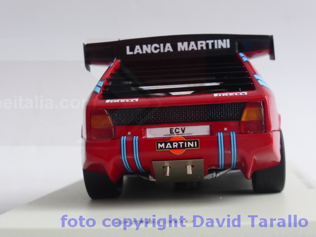Montaggio: Questa edizione è stata montata in Madagascar ma il modello non soffre dei difetti tipici delle serie non cinesi. Tutti i vari particolari sono stati sistemati con cura, anche se sui vetri laterali c’è qualche ditata di troppo. Ben applicate le decals, le ruote sono ben centrate e tutto è al suo posto. Non bellissimo l’effetto della decals del tetto, che in un unico film comprende i loghi Lancia e Martini ma ormai sappiamo che dovremo farcene una ragione.