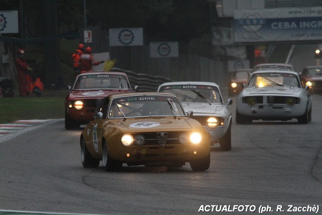 I 60 minuti di gara dell’Alfa Revival Cup aprono il programma della domenica. Sotto una leggera pioggia, la vittoria assoluta va a Franco Monguzzi che, dopo aver ottenuto la pole il sabato, taglia per primo il traguardo davanti a Davide Bertinelli (Scuderia AB Motorsport), entrambi con esemplari del 1971. Chiude il podio la coppia formata da Peter Bachofen e Roberto Restelli (OKP Alfa Delta Racing Team) con un’Alfa del 1968.