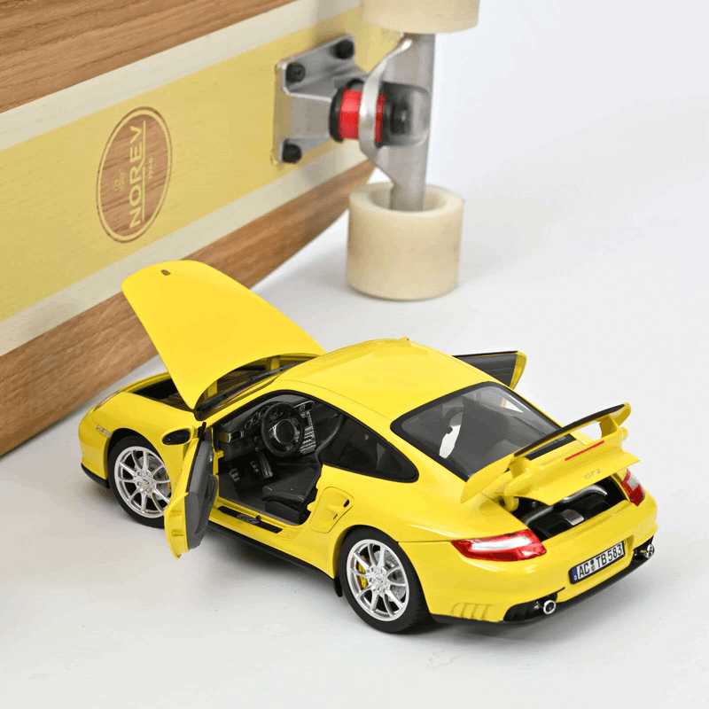 Domani alle ore 13, Norev metterà in vendita sul proprio sito due serie commercializzate in esclusiva. Si tratta di una Porsche 911 (997) Turbo in rosso metallizzato e di una 911 (997) GT2 gialla. Entrambe le serie saranno limitate a 200 pezzi numerati.