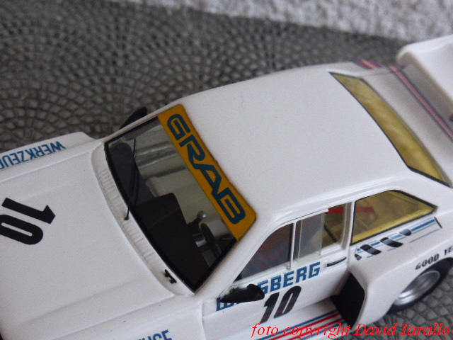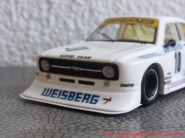 Era attesa da tempo, la Escort MkII Gruppo 5 DRM 1977 della Spark. Finalmente il modello, inserito nella serie tedesca, è uscito. Si tratta di un’edizione limitata a 400 esemplari numerati. La versione prescelta è quella della gara del Norisring. La Escort Gruppo 5 Weisberg-Grab non è un soggetto del tutto inedito, ma sicuramente è abbastanza conosciuto da giustificare una serie di quattrocento pezzi. Il primissimo che se ne occupò fu André-Marie Ruf, con un transkit su base Solido che permetteva la realizzazione della prima versione, quella con lo spoiler posteriore incorporato alla carrozzeria e lama anteriore corta. Da questo transkit – ma mi pare di averlo già raccontato in passato – derivò direttamente il modello Remember, venduto per diversi anni in kit e montato. Nel corso di un’estate di tanto tempo fa (1996?) Umberto Codolo montò per me uno di questi transkit e prima di verniciarlo e di completarlo nacque l’idea di realizzarne un master. In tempi molto più recenti, Remember ha realizzato anche la versione fatta ora da Spark, vale a dire quella con l’ala posteriore separata e lama anteriore lunga.