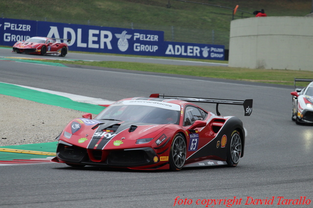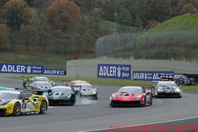 Trofeo Pirelli. Dopo le due vittorie conquistate nelle due prove dell’ultimo round del campionato sul circuito toscano, Luka Nurmi parte in pole position determinato a conquistare anche il titolo mondiale. La prima fase di gara vede alcuni contatti nelle retrovie che portano all’ingresso della Safety Car ed escludono dalla sfida al vertice Roman Ziemian (FML – D2P), Thomas Neubauer (Charles Pozzi – Courage) e Luca Ludwig (Octane 126), mentre Michelle Gatting (Scuderia Niki – Iron Lynx), vincitrice del titolo Trofeo Pirelli Europe rimane leggermente attardata.
