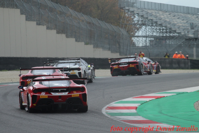 Le ultime fasi della prova trascorrono tra i duelli avvincenti per il primo e il terzo posto sul podio. Nell’emozionante ultimo giro, Luka Nurmi riesce a difendersi dagli assalti di Schirò e a conquistare il titolo mondiale a coronamento di una straordinaria stagione d’esordio nel Ferrari Challenge. Alle spalle dell’italiano Schirò, il dominatore della serie nordamericana Macneil riesce a contenere il ritorno di Paulsen e a tagliare terzo il traguardo.