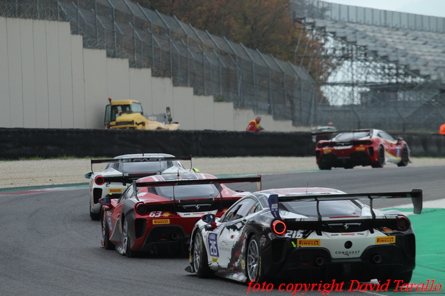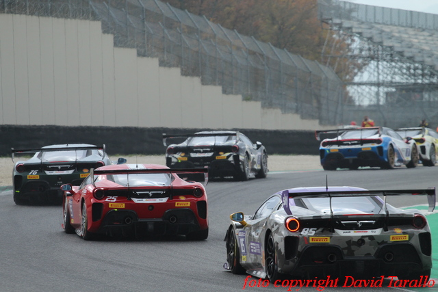 Trofeo Pirelli Am. Il titolo di Campione del Mondo della Am lo conquista Christian Brunsborg (Formula Racing), partito dalla pole position e deciso a riscattare la seconda posizione lasciata nel campionato Europe a Sergio Paulet (Santogal Madrid – MST Team). La prima fase, con diverse sfide al centro del gruppo, vede alcuni contatti che impongono l’ingresso della Safety Car. Brunsborg riesce comunque a tenersi fuori dalla bagarre e a mantenere la prima posizione di classe, anche dal ritorno di un sorprendente Enzo Potolicchio (Ferrari of Central Florida) che inanella una serie di giri veloci. Alle loro spalle, un inossidabile Ange Barde (SF Cote d’Azur – IB Fast) dopo aver conquistato la terza posizione riesce a difenderla dai ritorni di Hugo Delacour (Scuderia Monte-Carlo) prima e dal campione della serie europea, Sergio Paule