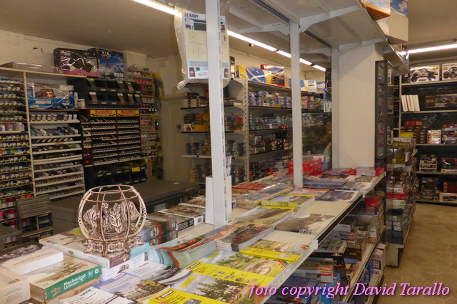Ottima anche l’offerta di kit in plastica e anche di modelli di treno, nelle varie scale più diffuse. Tra l’altro una visita a Hobbitalia2 è anche l’occasione di ammirare alcuni modelli montati che di tanto in tanto vengono esposti nelle vetrine. E siamo contenti che una delle più recenti passioni del proprietario sia la collezione di vecchi modelli da competizione di Polistil in 1:64, che esposti in una vetrinetta a parte, fanno la loro bella figura…
