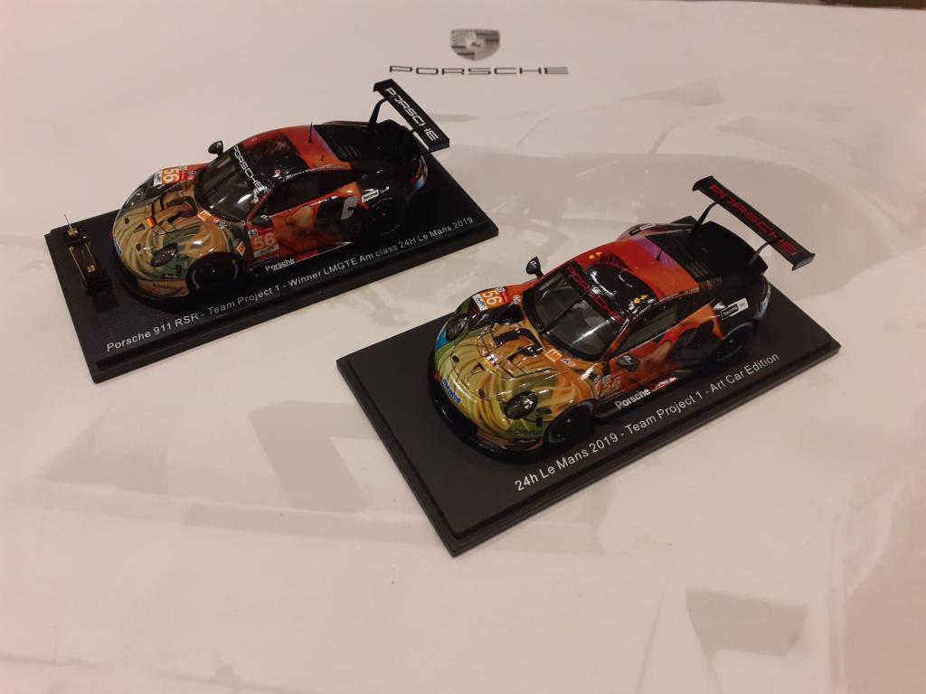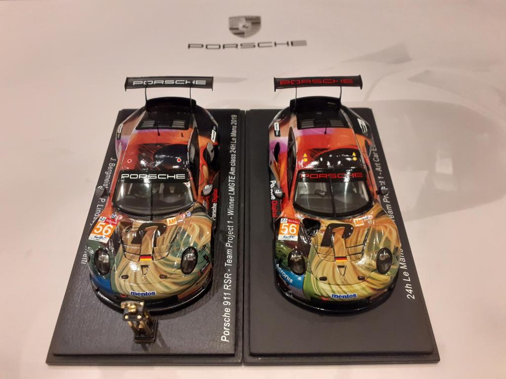 La Spark, come sempre, non si è lasciata sfuggire l’occasione di realizzare questa splendida Art Car in scala ridotta, tirando fuori ben tre diverse versioni della vettura in scala 1/43. Accanto al modello di normale produzione riproducente la RSR vincente della LMGTE AM alla 24h di Le Mans 2019 (ref.S7942), è stato realizzato anche un modello identico con attaccato alla basetta il prestigioso trofeo (ref.S7942S) realizzato in esclusiva per il negozio parigino BAM.