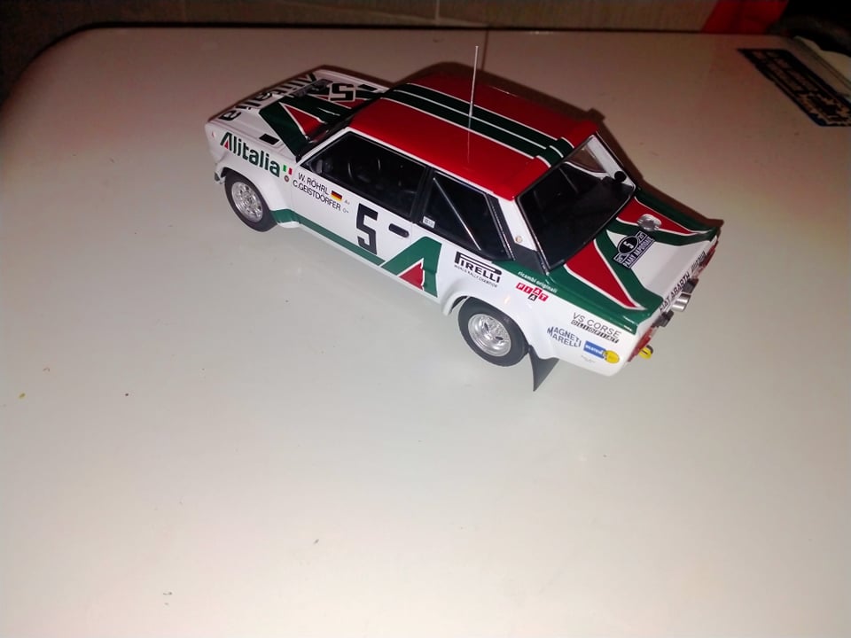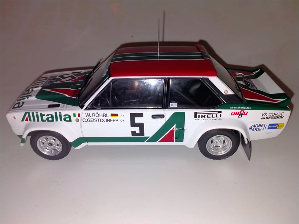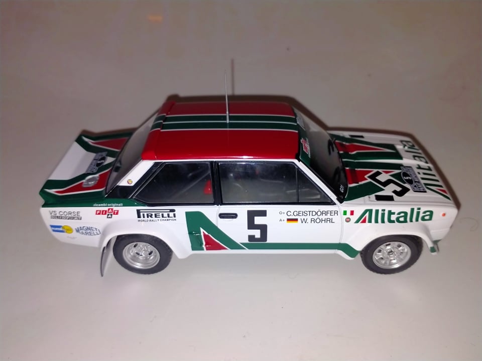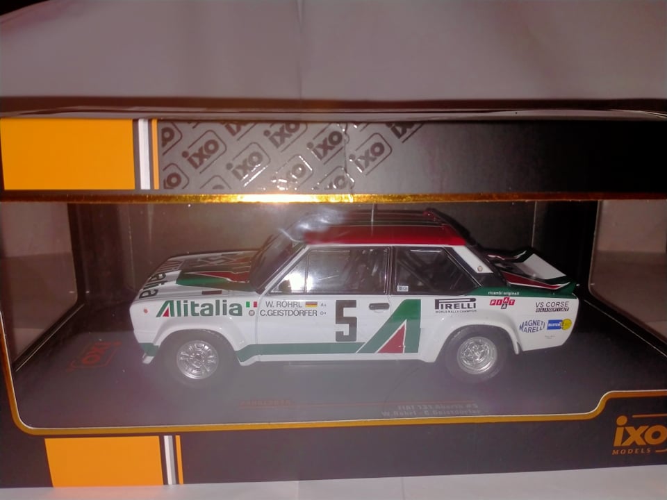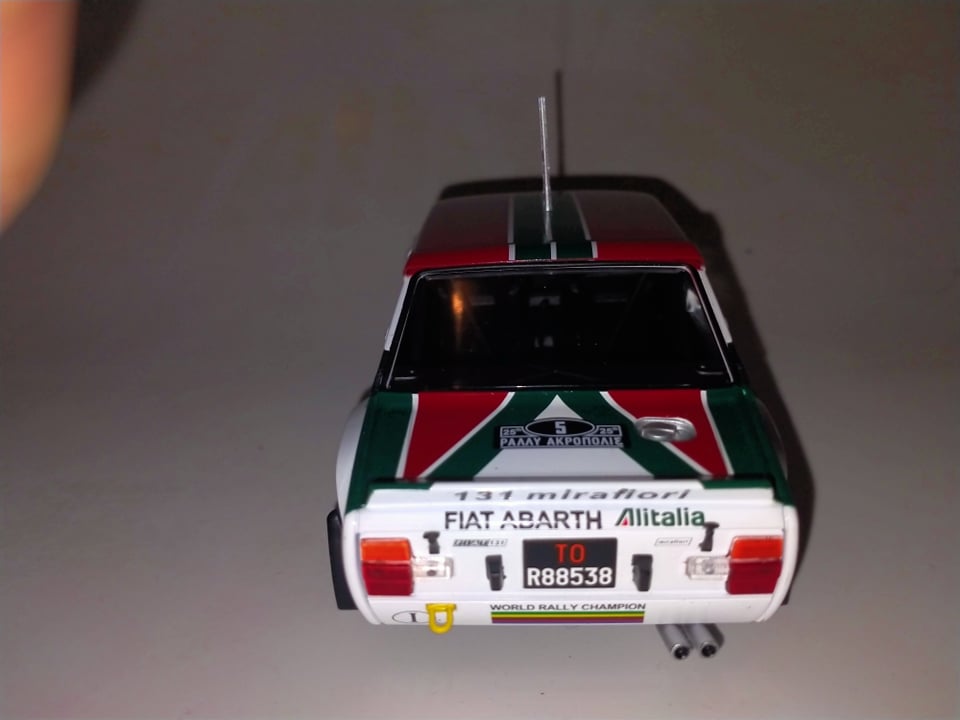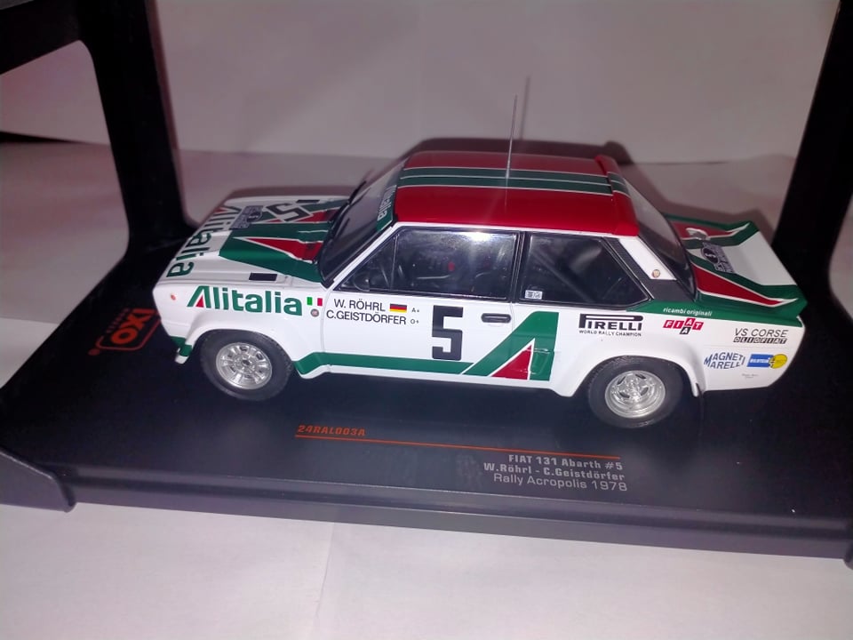 Ixo negli ultimi tempi sta puntando decisamente sulla tematica Rally, proponendo prodotti di qualità più che buona ed esplorando scale come l’1:24, una realtà finora relegata quasi esclusivamente al mondo degli speciali o dei kit in plastica, ma che per chi scrive rappresenta un bellissimo compromesso tra dettagli, ingombri, e gradevolezza del modello. Dopo essere apparsa a giugno 2020 nelle edicole italiane in versione Montecarlo 1980, la 131 Abarth è ora disponibile anche a marchio Ixo, per il momento solo in versione Acropolis 1978, nelle due versioni di Walter Röhrl, vincitore, e Markku Alen, secondo classificato. Il modello presenta alcune differenze rispetto a quello del Montecarlo 1980: innanzitutto, cambia la parte posteriore, in cui le luci passano dall’essere quelle grosse della versione Supermirafiori, a quelle piccole della 131 prima serie. Ixo ha dimostrato di aver operato una scelta intelligentissima nell’ingegnerizzazione di questi modelli: la scocca è uguale, ma tutto il pannello verticale di coda è stampato separatamente, in modo tale che sostituendolo si possono ottenere le due versioni senza implementare due stampi completi differenti. Decisamente un ottimo compromesso tra contenimento dei costi e fedeltà di riproduzione. Il modello appare molto curato, e nonostante la fascia di prezzo piuttosto contenuta (è reperibile, nei giusti canali, a meno di 30€) presenta dettagli rimarchevoli, come la placchetta col codice Abarth dell’esemplare impiegato in corsa (Gxx), G31 nel caso dell’auto di Rohrl in esame, che risulta oltretutto storicamente corretto, e i ganci di traino anteriori e posteriori, molto belli e curati. Certo, ci sono anche dettagli decisamente “economici”, come l’antenna, piuttosto brutta e tozza, e le cinture di sicurezza in decals.