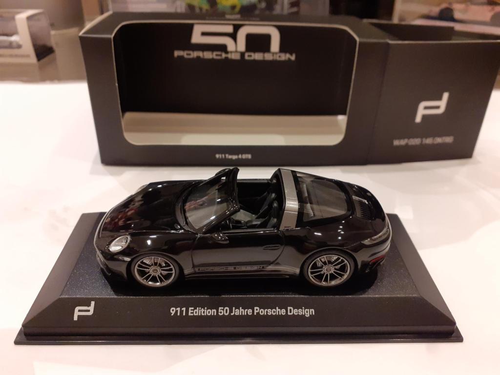 Naturalmente non potevano mancare i modellini. Porsche ha infatti commissionato a Minichamps la realizzazione delle riproduzioni in scala 1:43 della 911 S Targa 2.4 del 1972 (WAP0201980NTRG) e della 911 (992) Targa GTS Edition 50 Years Porsche Design (WAP0201450NTRG) entrambe regolarmente disponibili tramite lo shop di Porsche Design.