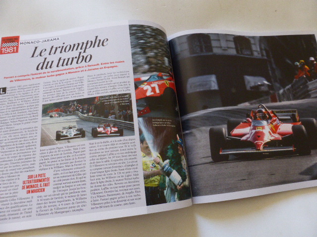 Ecco, direi che la patata bollente, Sport Auto, l’ha passata a buone mani, difficili da scottare. Ne è venuto fuori un bel volume di 168 pagine (costo in Francia di € 17,50), denso come testi e anche come foto. Iniziamo con l’impaginazione: un layout molto fine-anni settanta, quindi semplice e anche pieno di concretezza, con una spruzzata di stuzzicante creatività anni ottanta. Già questo ti rende ben disposto alla lettura. Il cardine è la Formula 1, ma non manca una ficcante introduzione sull’origine e sullo sviluppo di Ferrari come azienda e sulla storia personale del Commendatore. Poi, le corse: anno dopo anno viene analizzata la stagione, con la vetture e i piloti principali. Attenzione, però: non ci sono tutte le annate. Mancano gli anni “neri”, ossia quelli con le Ferrari particolarmente poco competitive, come il 1980, il 1986, il biennio 1992-1993 ma anche il 1984, annata interessante che avrebbe meritato almeno una pagina. Sì, c’è qualche scarna (molto scarna) informazione per “ricucire” gli strappi ma nulla di più. Peccato. In compenso le ultime stagioni, anche quelle più sfigate, ci sono tutte e dal 2006 si arriva senza interruzioni alla fine del 2021.