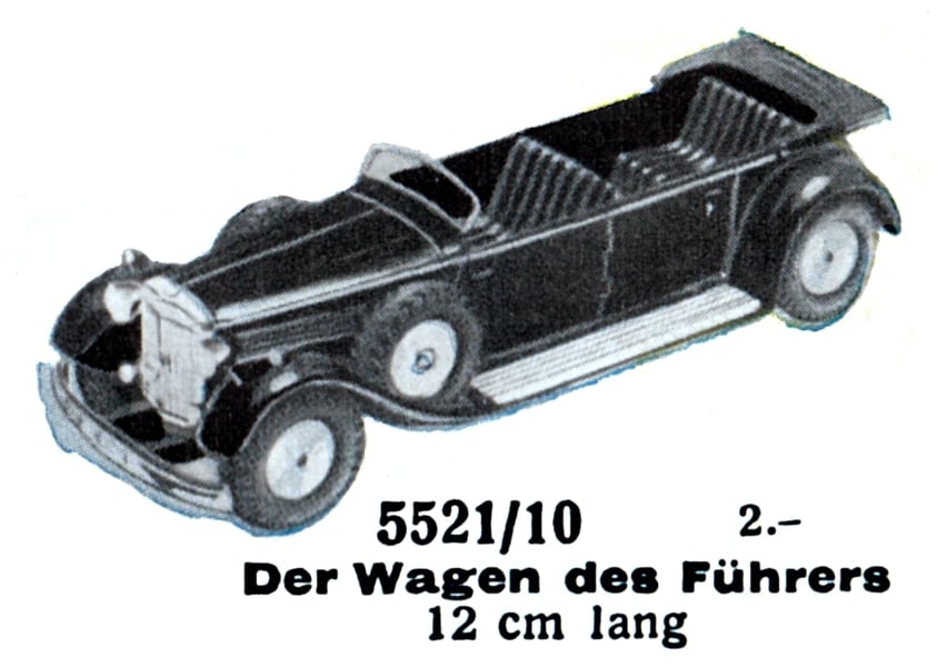 A quelle poi si aggiunsero molte altre auto, dalle già citate Bluebird e Alfa Bimotore passando per una monumentale Mercedes 770 Torpedo nera denominata semplicemente “Der Wagen des Führers” a catalogo (perché si, la Märklin prevedeva un catalogo stampato, con disegni a colori dei modelli) che ad oggi è forse il modello più raro e costoso di tutta la produzione Märklin, un altrettanto raro KdF-Wagen, ossia il Maggiolino prima maniera (altro modello di rarità e quotazioni disarmanti), alcune belle Adler Streamliner, camion Krupp, e tutta la genealogia delle Mercedes e delle Auto Union di quegli anni ruggenti, e per “tutta” si intende tutta: ogni singola versione è stata prodotta, con riguardo per varianti di carrozzeria anche minime, un impegno di aggiornamento degno di una Spark dei giorni nostri.