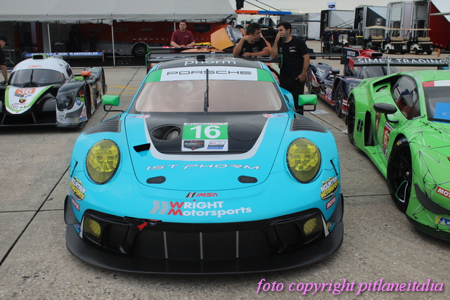 La settimana di Sebring è già in pieno svolgimento, con la 12 Ore IMSA in programma sabato e con la 1000 Miglia del WEC prevista per venerdì. La convivenza dei due campionati in un circuito “antico” come quello di Sebring causa inevitabilmente qualche problema. I due paddock sono stati sistemati lungo l’Ullman Straight, con una scelta logistica sicuramente riuscita, visto il gran numero dei concorrenti. Gran parte dei rappresentanti dei media è stata sistemata nella struttura che negli anni scorsi ospitava le auto storiche. Sarebbe stato impossibile, infatti, far entrare tutti nell’angusta sala adiacente alla pitlane. Presentiamo una gallery di foto scattate stamani nel paddock IMSA e nel corso delle verifiche tecniche.