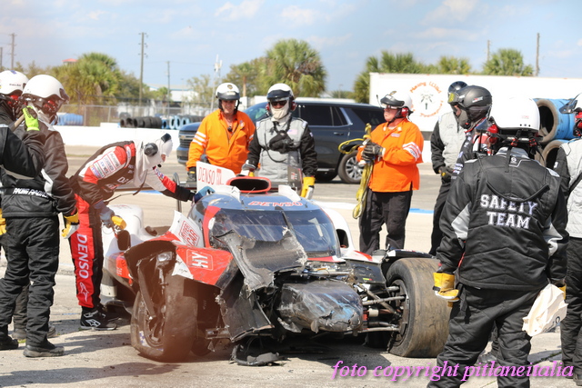 La gara del WEC a Sebring ha subito un’interruzione a causa di una violenta uscita di pista della Toyota di Lopez. La vettura del team Gazoo Racing, nel tratto velocissimo che precede la curva che immette nell’Ulmann Straight, ha tirato dritto in una piega a sinistra e si è schiantata contro le protezioni, capottandosi. Lopez è uscito subito ed è apparso lucido alle domande dei medici. E’ stato comunque trasportato in pronto soccorso per accertamenti.
