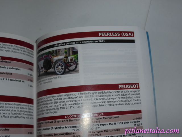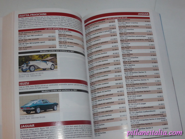 E’ di recente pubblicazione la trentasettesima edizione della Cote de l’automobile de collection, l’annuario edito da La vie de l’auto. Si tratta di una guida molto dettagliata sui risultati delle vendite di autostoriche nel corso del 2021. Ma non sono soltanto le migliaia di vendite recensite per auto di tutti i generi e di tutte le epoche a fare di questo libro uno strumento utilissimo di consultazione: per ogni marca è presente anche una breve storia e i modelli sono così tanti che si ha praticamente una panoramica dettagliata anche se ovviamente mai completa, dell’intera storia dell’auto, dalla fine dell’ottocento ai primi anni duemila. In questa edizione 2022, di 832 pagine, sono 355 le marche repertoriate, con 11293 modelli, 5430 risultati di vendita e 5401 illustrazioni a colori. In una concisa ma interessante introduzione si fa il punto sul mercato attuale e si danno poi alcuni ragguagli sulla legislazione e la normativa delle aste di vendita. Il prezzo della guida LVA è di € 39,00 in Francia. E’ una pubblicazione che consiglio per esperienza diretta, essendo le precedenti edizioni rimaste costantemente sulla mia scrivania nel corso dei mesi per una consultazione veloce al fine di chiarire rapidamente dei dubbi in fase di scrittura o per ispirazione in vista di futuri articoli.