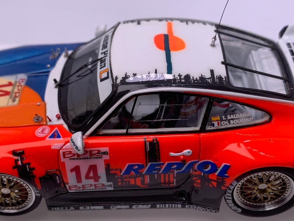 Proseguiamo la serie dei montaggi di Gualtiero Negri con un kit Renaissance (1:43) con decals JAL43. La vettura, una Porsche 911 GT2 Evo, corse nel BPR 1996 schierata dal team Kremer. Come nel caso della Porsche Carrera Safari 1978, pubblicata qualche settimana fa, si tratta di un montaggio che Gualtiero definisce “standard”, nel senso che non sono state fatte troppe modifiche al modello di base. Ovviamente, in questo caso, “standard” significa tutt’altro che semplice. Si apprezza come sempre l’estrema precisione di assemblaggio, in un kit dove già solo far tornare vetri e cornici è una bella impresa.