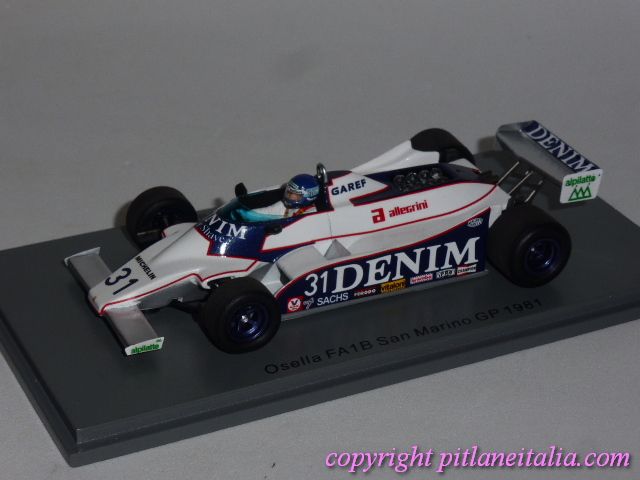 Dopo una lunga interruzione, Spark torna sulle Osella Formula 1 delle origini e lo fa proponendo due vetture del 1981, quella guidata da Gabbiani al GP del Belgio e quella di Miguel-Angel Guerra al GP di San Marino a Imola. Sempre per il 1981, Spark ha annunciato anche la prossima uscita delle vettura di Jean-Pierre Jarier al GP d’Inghilterra e di Piercarlo Ghinzani al GP del Belgio. A quel punto, per completare la schiera dei piloti Osella 1981, mancherà solo Giorgio Francia, che fallì la qualificazione in Spagna, a Jarama.