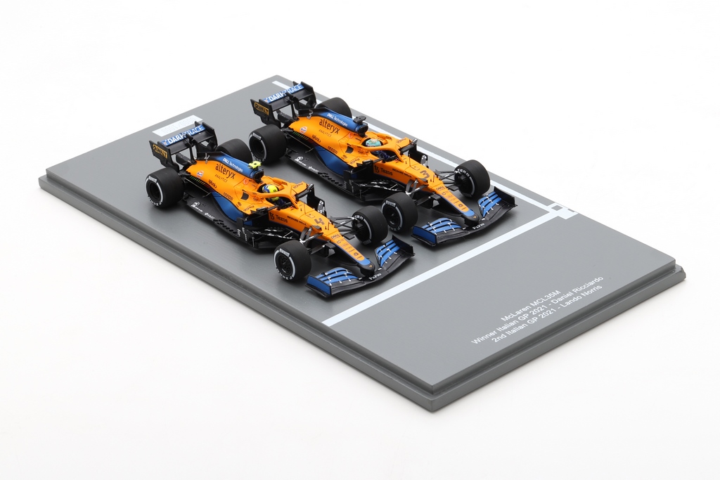 | S7694 | MCLAREN MCL35M N°3 + N°4 McLaren Vainqueur GP Italie 2021 2ème GP Italie 2021 Daniel Ricciardo + Lando Norris avec Pit Board (1000ex) |